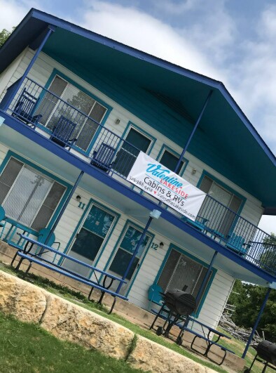 Welcome to Lakefront Suite 12 at Valentine Lakeside, part of the charming Lakefront Suites Collection — a two-story quadplex overlooking beautiful Lake LBJ. The Upper-Level Suites are conveniently located at ground level with easy access from the parking area, while the Lower-Level Suites, like Suite 12, sit just below, accessible by a short walkway that gently slopes toward the water’s edge.