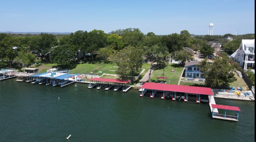 Welcome to Lakefront Suite 15 at Valentine Lakeside, part of the charming Lakefront Suites Collection — a two-story quadplex overlooking beautiful Lake LBJ. The Upper-Level Suites, like Suite 15, are conveniently located at ground level with easy access from the parking area, while the Lower-Level Suites sit just below, accessible by a short walkway that gently slopes toward the water’s edge.