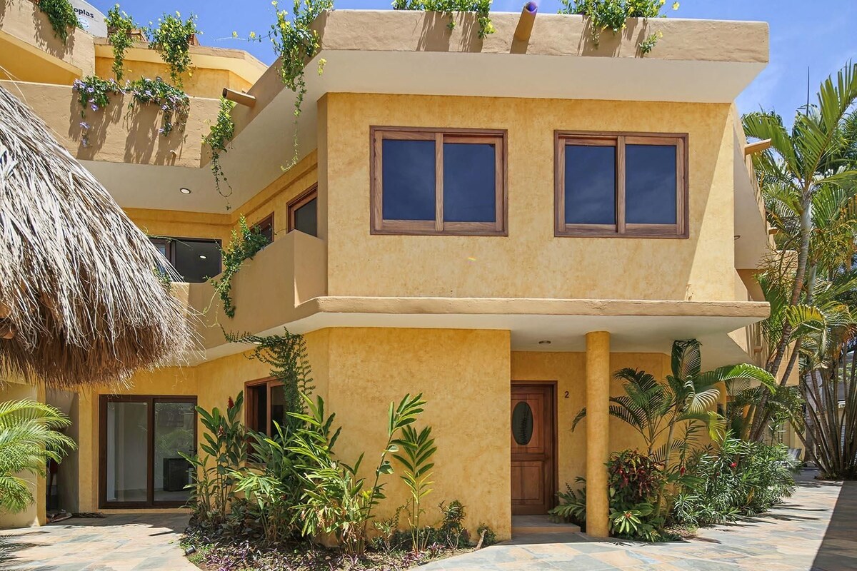 Situado en Punta de Mita, el Hotel La Quinta del Sol está justo enfrente de la playa, con vistas al mar desde las 7 habitaciones tipo estudio. Las habitaciones del nivel superior cuentan con 1 cama doble (máx. 2 personas), cocina, aire acondicionado, wifi y fantásticas vistas desde grandes balcones compartidos. Las comodidades incluyen terraza en la azotea y club de playa con hamacas, sombrillas, palapas y barbacoa. Cerca de muchas escapadas de surf increíbles y a 3 minutos a pie de restaurantes y tiendas. Los anfitriones viven en el lugar. ¡Disfruta de un apartamento privado con la facilidad de un hotel!