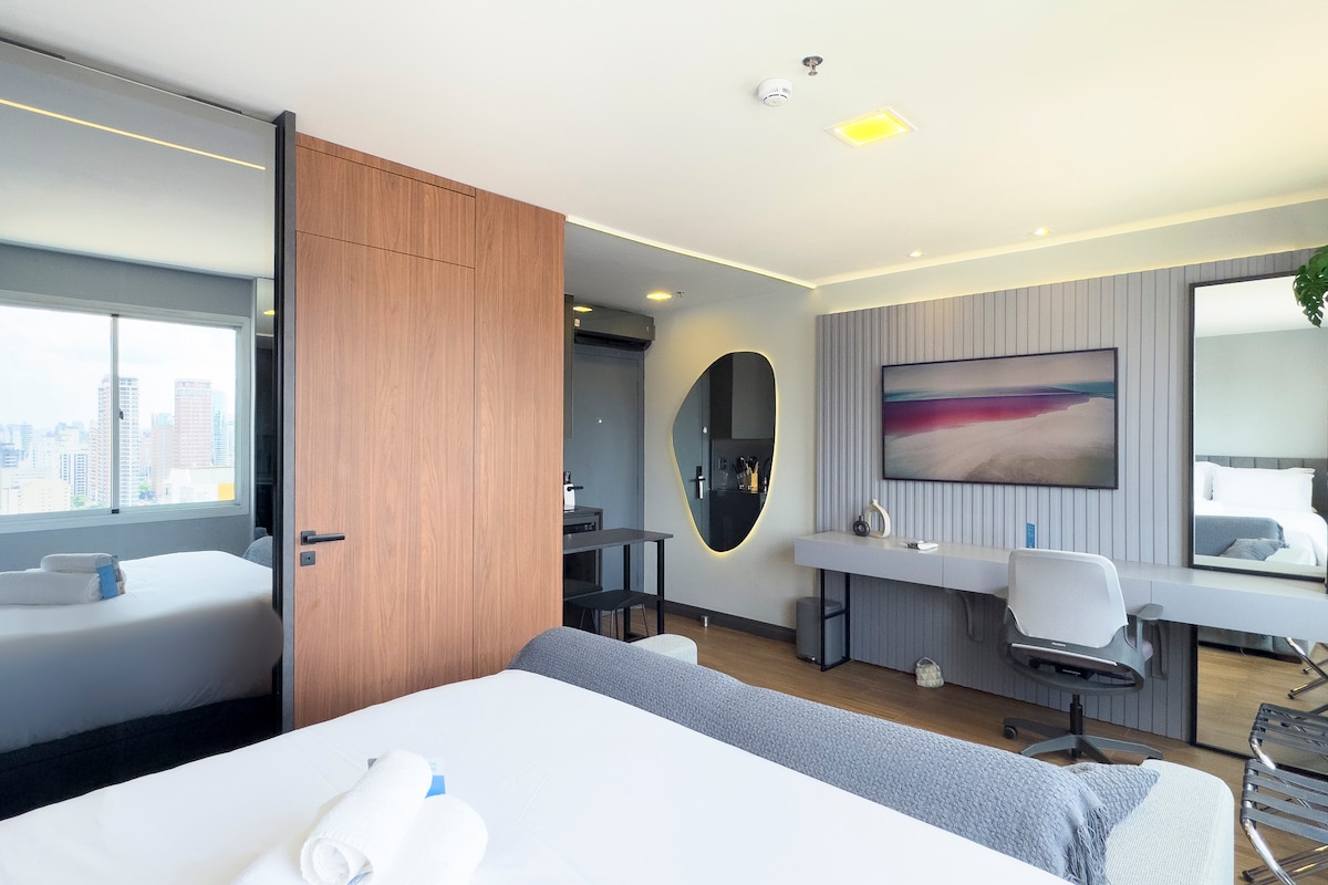Con una vista impresionante de la ciudad de São Paulo, este espacio fue diseñado para ofrecerle lo máximo en lujo, comodidad, sofisticación y elegancia. Aprovecha la proximidad a los mejores restaurantes, tiendas y atracciones culturales mientras disfrutas de una experiencia única e inolvidable. Perfecto para quienes buscan comodidad y estilo en el corazón de la metrópoli. Ubicado a pocos metros de la Av. Paulista, con estructura de ocio completa y coworking.