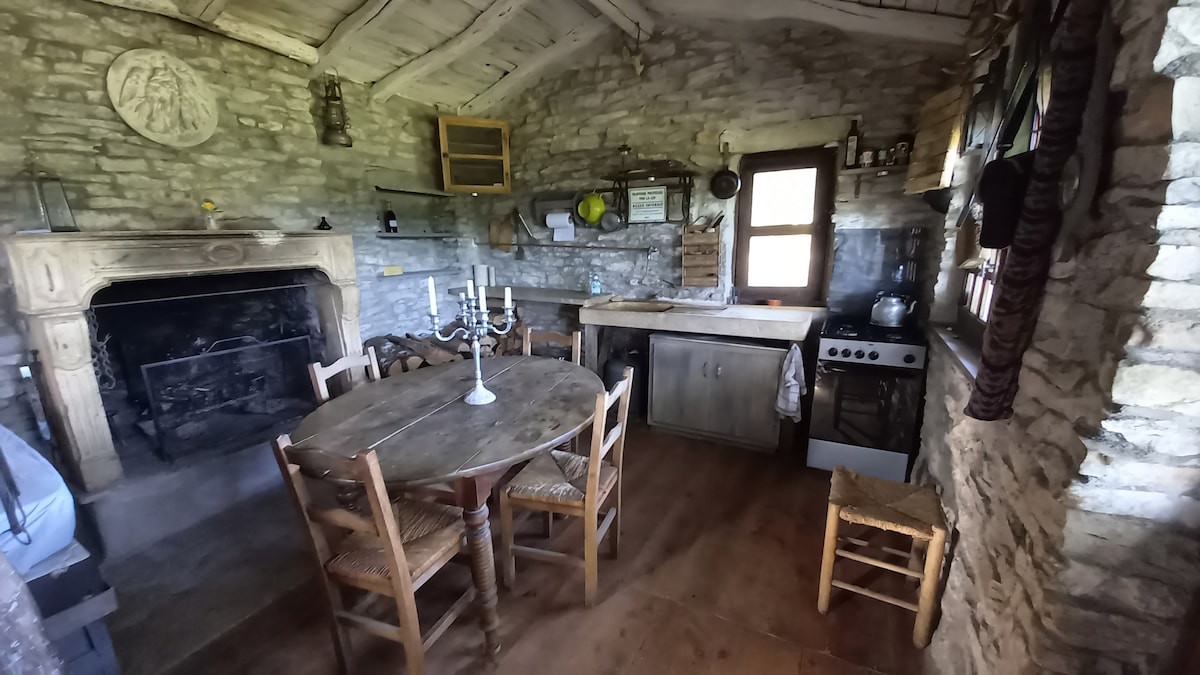 Esta cabaña de piedra fue reconstruida sobre los restos de una antigua cabaña de pastor. Se encuentra en medio de una pradera, pero se puede llegar en coche por un camino blanco. No hay electricidad ni agua corriente. La cocina incluye una estufa de gas, un fregadero donde llega agua de lluvia para lavar los platos. Ponemos a su disposición un bidón de 10 litros de agua potable. Hay una ducha solar al aire libre, de lo contrario, el baño se hace con guante. Inodoro seco en el exterior de la cabaña.