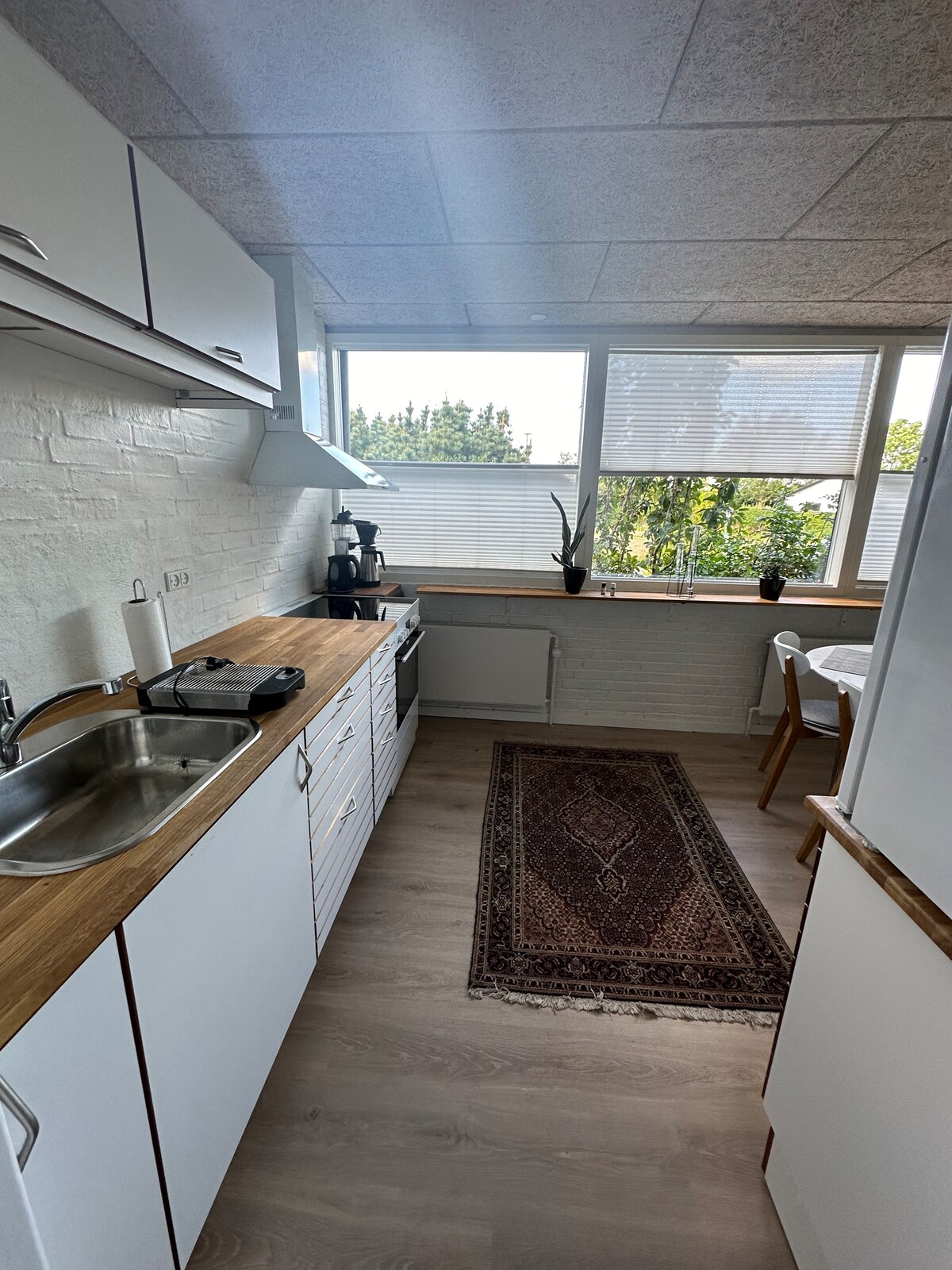 Apartamento delicioso en el corazón de Aabenraa. Gran salón abierto + cocina-comedor y 2 dormitorios. Un total de 100 m2 luminosos y espaciosos con vigas a la vista, techo alto y mucho ambiente, y espacio para 6 personas + cuna para niños pequeños. Rincón de juegos con juguetes y libros, así como juegos para grandes y pequeños. Tendrá una ubicación completamente céntrica en la calle peatonal con acceso directo a la vida de la ciudad, cafés, etc., y al mismo tiempo con vistas al fiordo y cerca de la playa. Plaza de aparcamiento a 2 minutos del apartamento, lavadora y secadora.