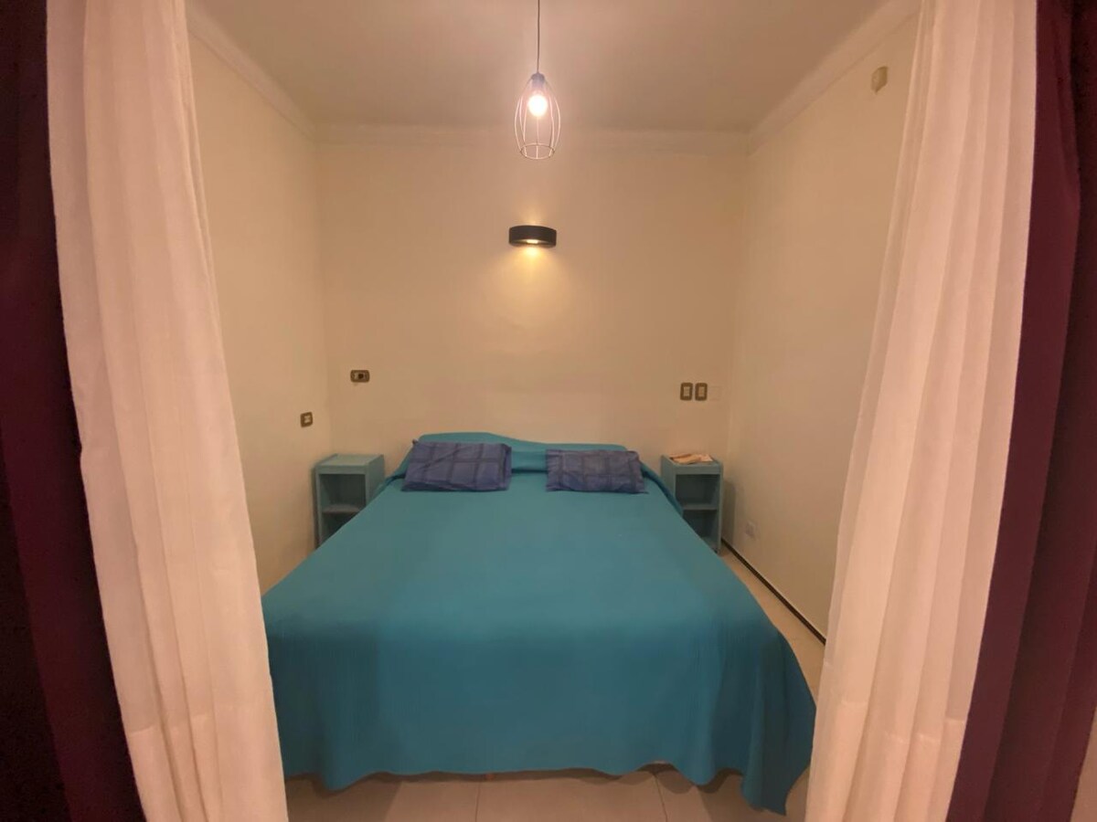 Disfrutá de la sencillez de este alojamiento tranquilo y céntrico, diseñado para que puedas escapar de la rutina y relajarte en un ambiente cálido y acogedor. Nuestro pequeño hogar a estrenar es el lugar perfecto para descansar, reencontrarse con los seres queridos, enamorarse más, rejuvenecer y recargar energías. Disfruta de un sueño reparador, en un ambiente climatizado y con cortinas black out. TV e internet Wi-Fi de alta velocidad para entretenerte o trabajar. A pasos de Las Lomitas.