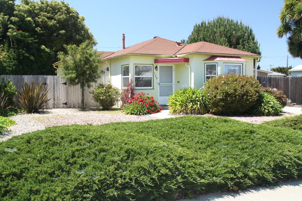 Bungalow súper lindo de 1939 en el corazón de la región vinícola de la costa central de California. Cerca de playas, docenas de salas de degustación de vinos y viñedos, y la Base Aérea de la Fuerza Aérea de Vandenberg. Este es el lugar perfecto para ver los cohetes de lanzamiento SpaceX o ULA, abastecerse de pinot noir y chardonnay de clase mundial provenientes de las colinas de Santa Rita para su bodega, relajante, excursiones de un día. Solvang Brewing está a pocos pasos, al igual que numerosos restaurantes y Ryan Park.