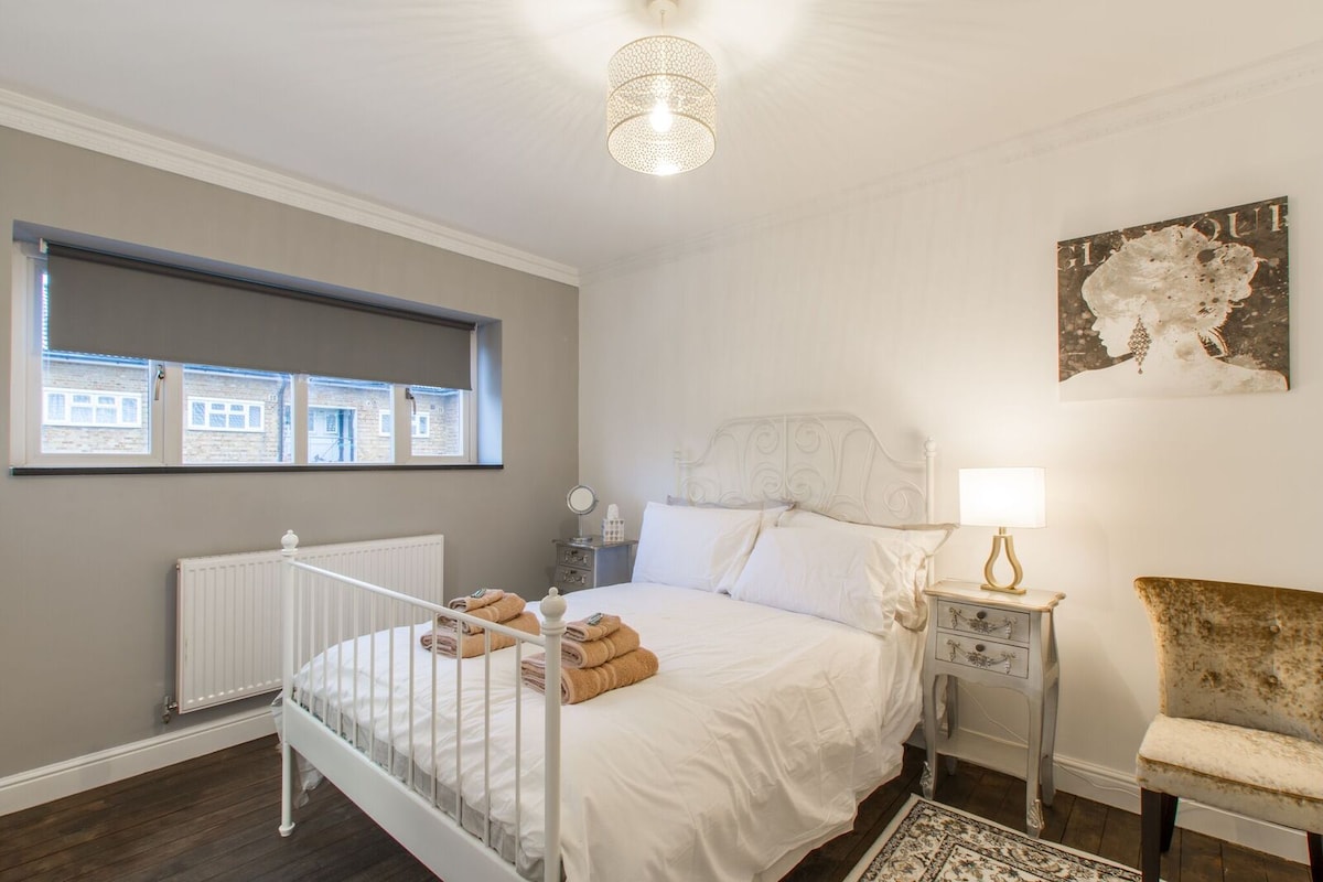 Este lujoso espacio en el último piso con vista a los campos te invita a relajarte. Ultralimpio, tranquilo y con un estilo precioso. Equipado con todo lo que necesitás y más. Prepará café fresco con la cafetera Ninja Luxe. Mirá tus programas favoritos en los televisores inteligentes, jugá juegos de mesa en grupo o trabajá donde la vista te inspire. Sea cual sea el propósito de tu estadía, trabajar o relajarte, ¡este es el lugar para estar! Londres está cerca, pero se siente como un mundo aparte. ¡Siempre hay un lugar para estacionar!