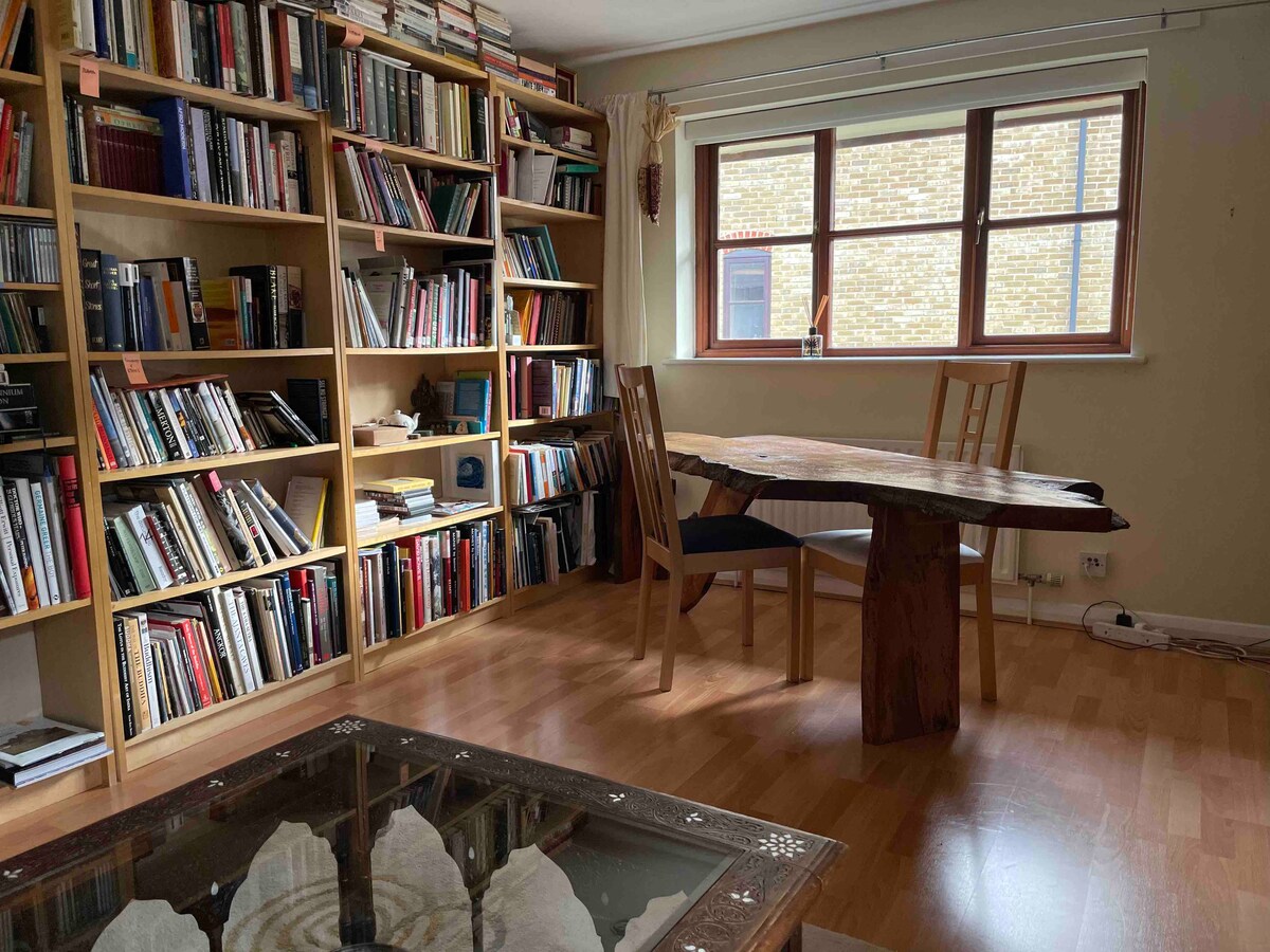 En la planta superior de una hermosa mansión victoriana, en medio de los restaurantes y bares de moda de Dalston, escondidos en una calle lateral, llena de luz natural y plantas, ¡esta es una base ideal para explorar desde + un lugar para refugiarse y relajarse! El salón independiente se transforma en un cómodo segundo dormitorio con una cama futón doble (con un colchón profundo y cómodo). ¡O baja las persianas opacas y carga el proyector para hacer una gran sala de cine! 1 o 4 personas, ¡es fabuloso!