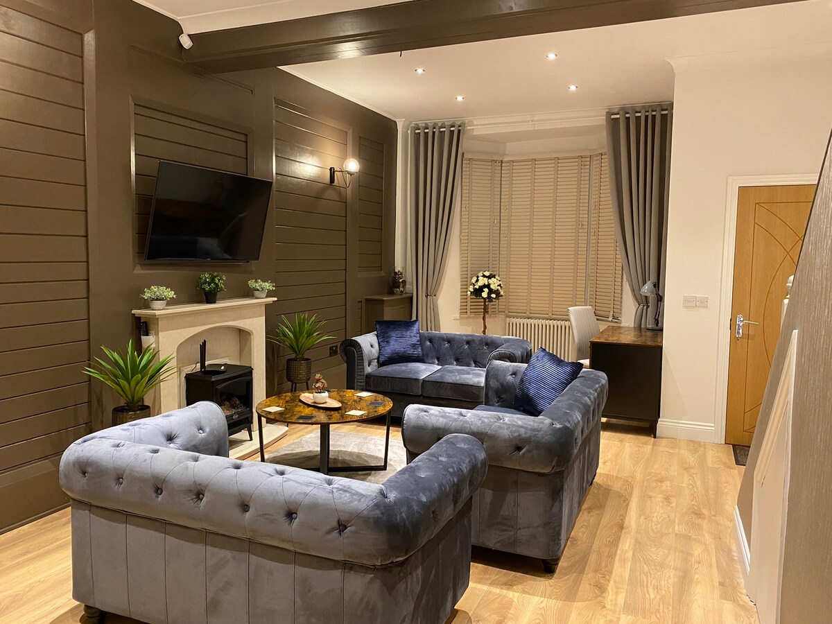 Este elegante Airbnb de 2 dormitorios con espacio para un máximo de 4 huéspedes es perfecto para relajarse o una escapada divertida: esto es lo que disfrutarás: Jacuzzi Sauna Jardín privado Acogedora sala de estar con TV inteligente con wifi gratuito y Netflix Dos dormitorios elegantes con camas cómodas y un montón de espacio de almacenamiento Cocina totalmente equipada. Baño moderno con todos los elementos básicos proporcionados Cuarto de servicio aparte Aparcamiento gratuito Auto registro de entrada/salida Prosecco sin alcohol Ropa de cama Toallas Albornoz y pantuflas Té Café
