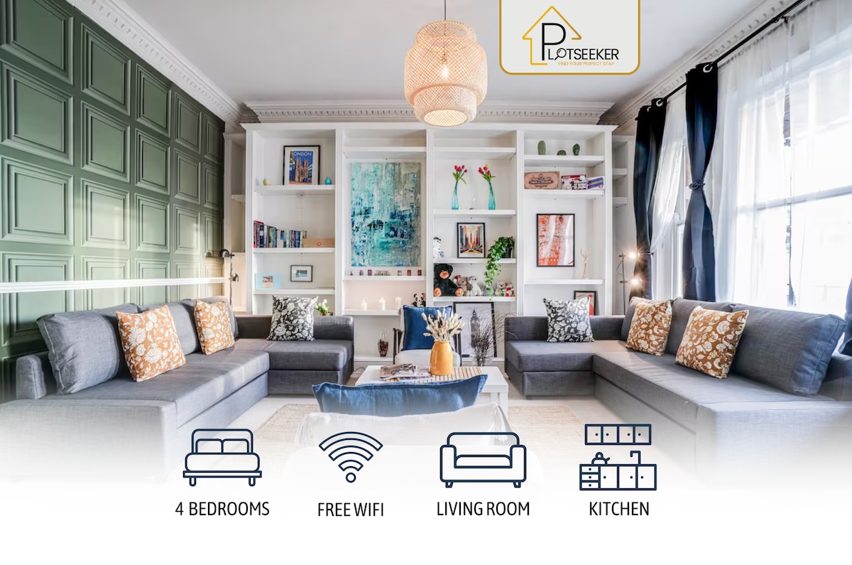 Enjoy the perfect London stay in our spacious 4-bedroom apartment in Shepherd’s Bush, ideal for families and groups. Sleeps 8 comfortably with cosy beds and modern London amenities. Relax in a stylish, bright flat with large windows and elegant bathrooms. Just steps from Westfield Shopping Centre, top restaurants, bars, and vibrant culture. Excellent train, rail, tube, and bus links make exploring Central London easy. A rare high-occupancy London home in a prime location.