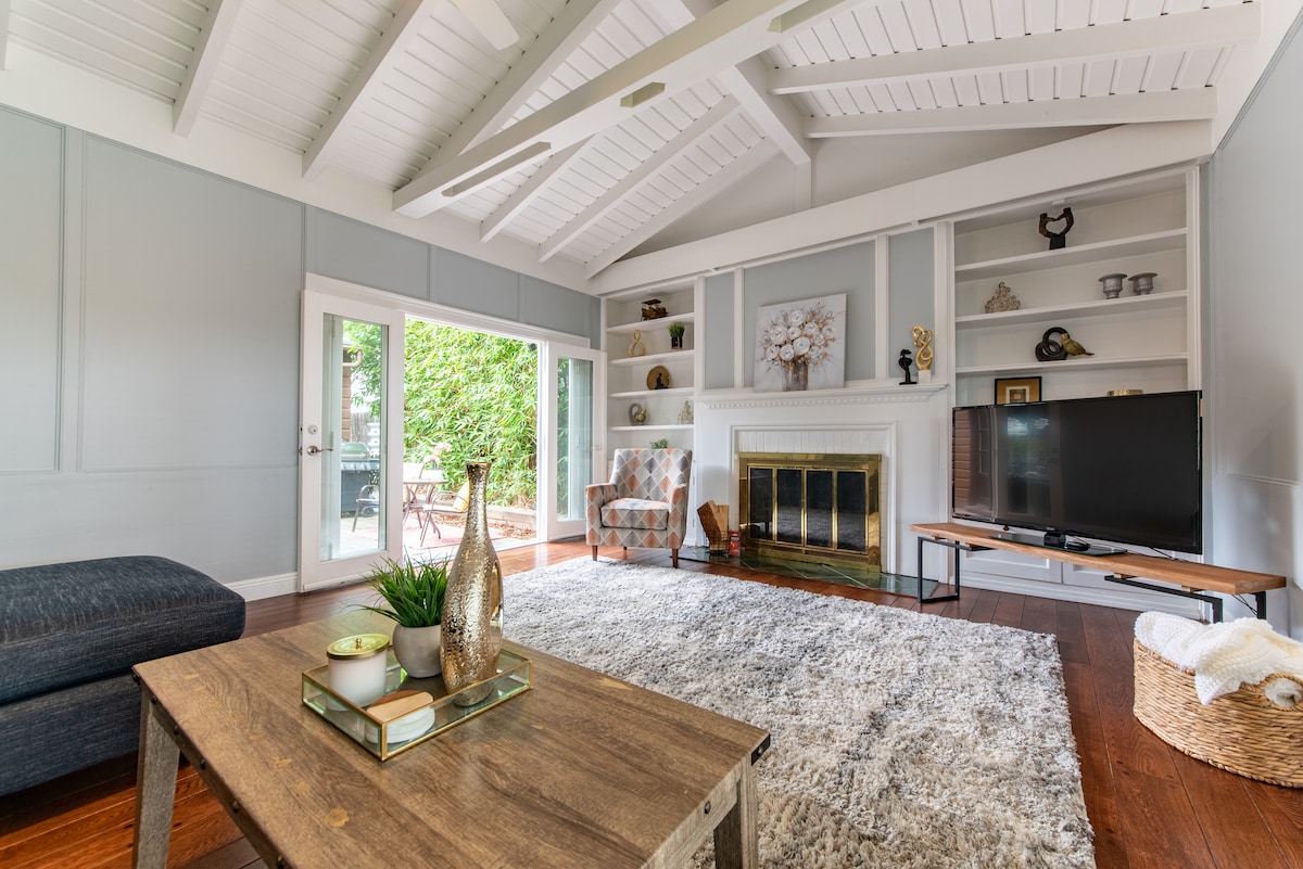 This beautiful bungalow has been remodeled and has many amenities. It is perfect for a family, couple's getaway, or the business traveler that enjoys a home environment. The furniture adds a pleasant warmth in a contemporary beachy style. Light the fireplace, open a bottle of wine, relax in the spa, or watch the world go by while rocking on the front porch. Go on a bike ride, explore all the fantastic shops on retro row, bars, restaurants and many other attractions the area has to offer.