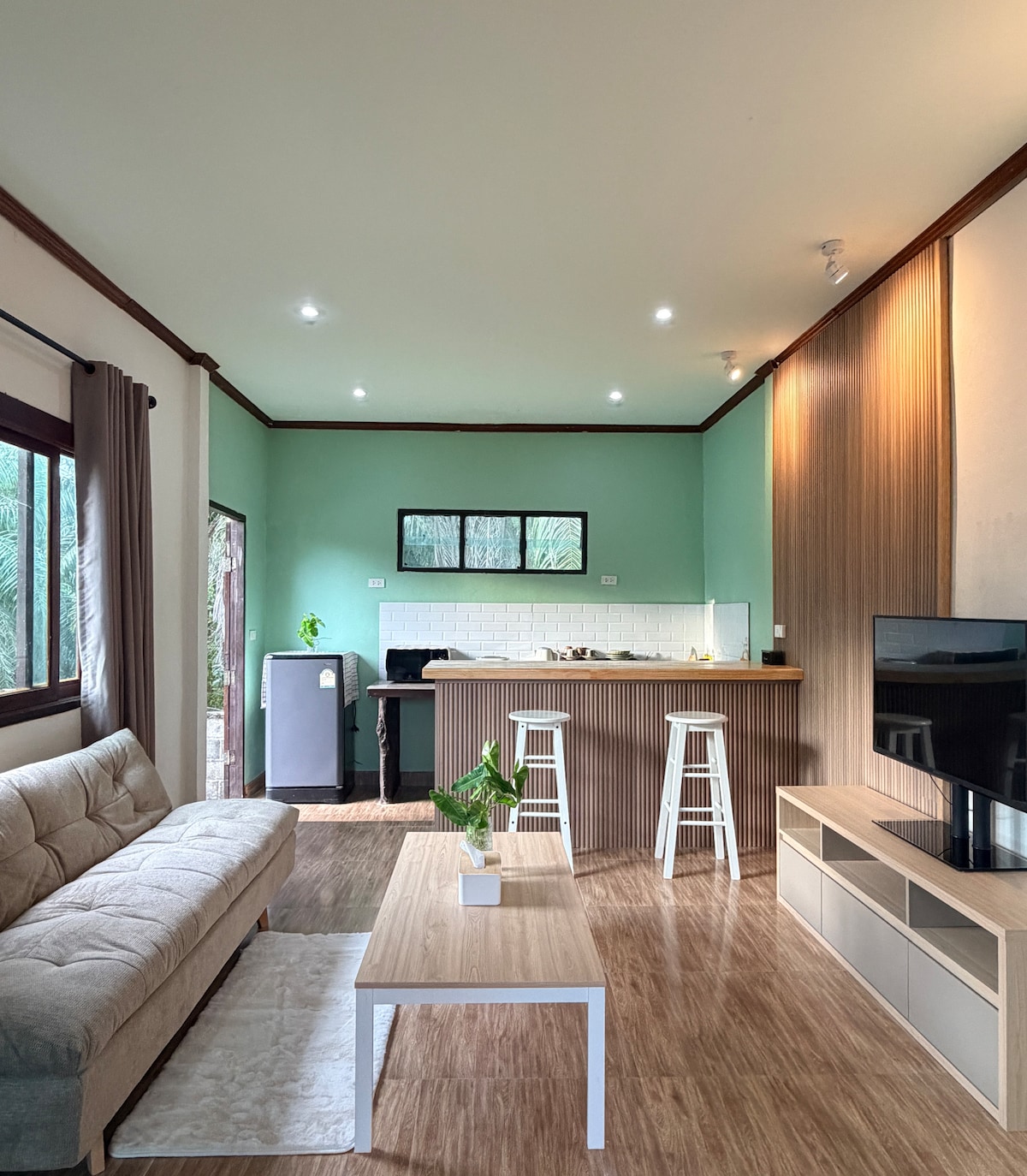 Welcome to The Palm Villa - a private, stylish escape in Koh Lanta, Krabi. Perfect for relaxing holidays with family or friends, our villa offers a peaceful vibe, modern comforts, and a great location between Klong Dao and Long Beach, two of the most popular beach in Lanta. Newly built in 2025. One-story villa, 170 sq.m., divided into a kitchen with a living room, 2 bedrooms, 2 bathrooms. Perfect for a group of 4-5 persons.