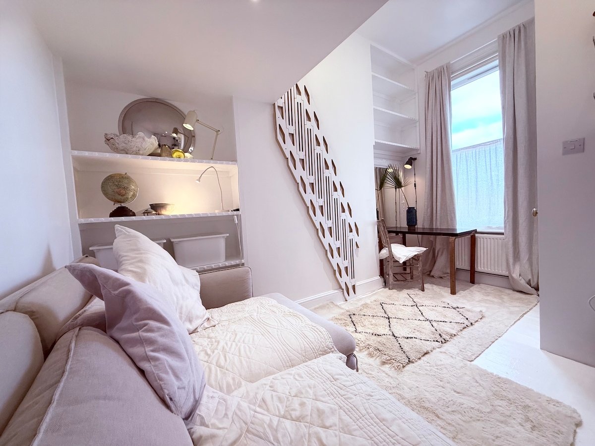 Un hermoso estudio con jardín independiente, ubicado en el corazón del histórico Highgate Village. El estudio de 320 pies cuadrados está equipado con cama tamaño king, cocina pequeña, baño con ducha espaciosa, TV de alta definición de 55 pulgadas, BBC iPlayer, Amazon y Netflix. Hay un patio exterior semiprivado con asientos. El pueblo tiene diez pubs/restaurantes a pocos minutos a pie, junto con el hermoso y extenso Hampstead Heath y el cementerio de Highgate. Con excelentes conexiones de transporte de autobús y metro cerca.