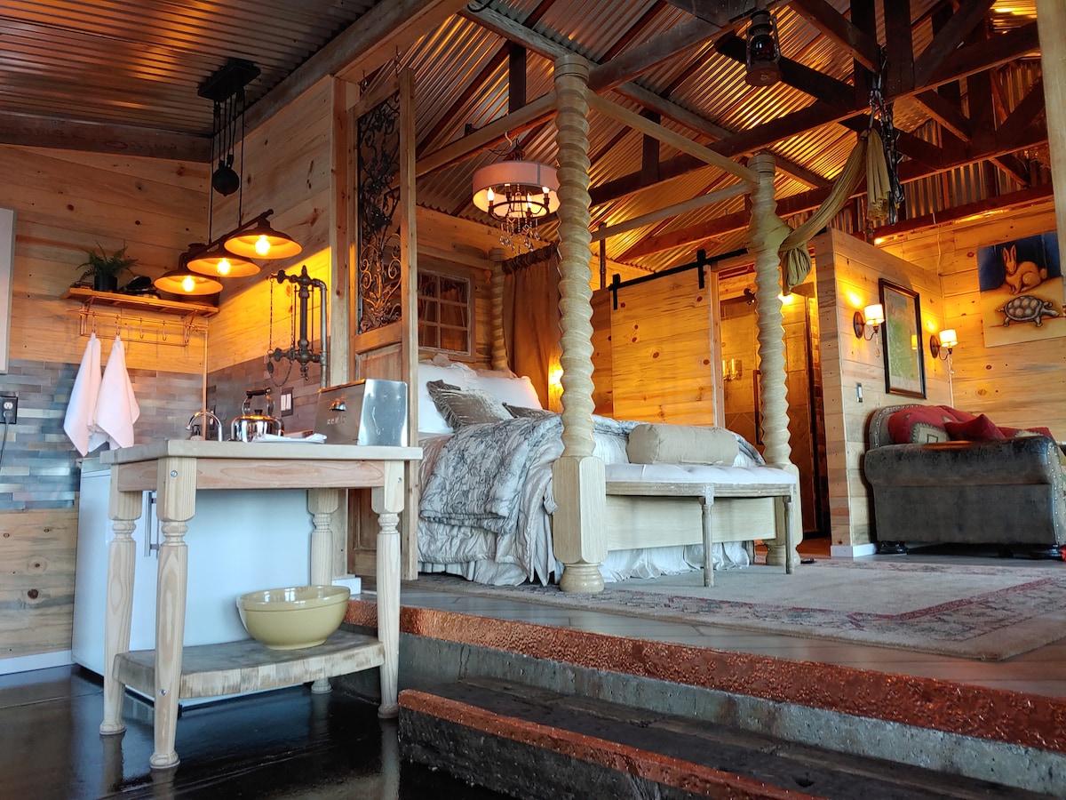 Ubicado en la cordillera Sierra Azul en Los Gatos, el Santuario combina una decoración rústica de campo, arte original steampunk y tecnología de vanguardia con una experiencia de spa única, lo que lo convierte en el refugio privado perfecto. Rodeado de numerosas rutas de senderismo, muchos animales amigables y un vasto bosque salvaje a nuestro alrededor para explorar a tu gusto, junto con esta exclusiva unidad sirve para proporcionar un espacio refrescante y rejuvenecedor para reconectar con tu ser querido, contigo mismo y, por supuesto, ¡con la Madre Naturaleza!