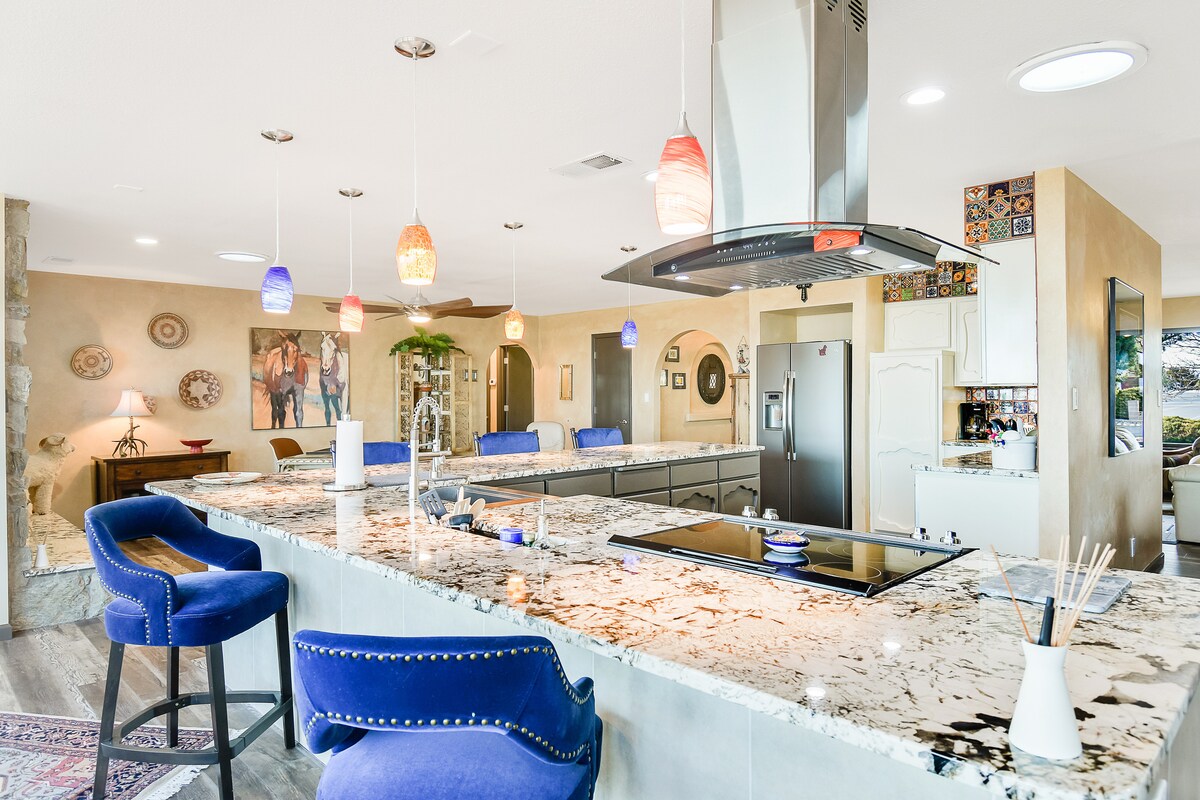 ¡VISTAS, VISTAS, VISTAS de Sandia, las luces de la ciudad y más allá! Vuelve a casa y relájate con una copa de vino o té y disfruta de las vistas. Esta casa cuenta con una gran isla de cocina que es el centro de la sala de estar principal. Esta cocina gourmet está equipada con casi todo lo necesario para cocinar y entretener. Las camas son muy cómodas (2 colchones Tempur-Pedic) con sábanas de calidad. La ubicación es extremadamente práctica para la ciudad de Río Rancho y Albuquerque.