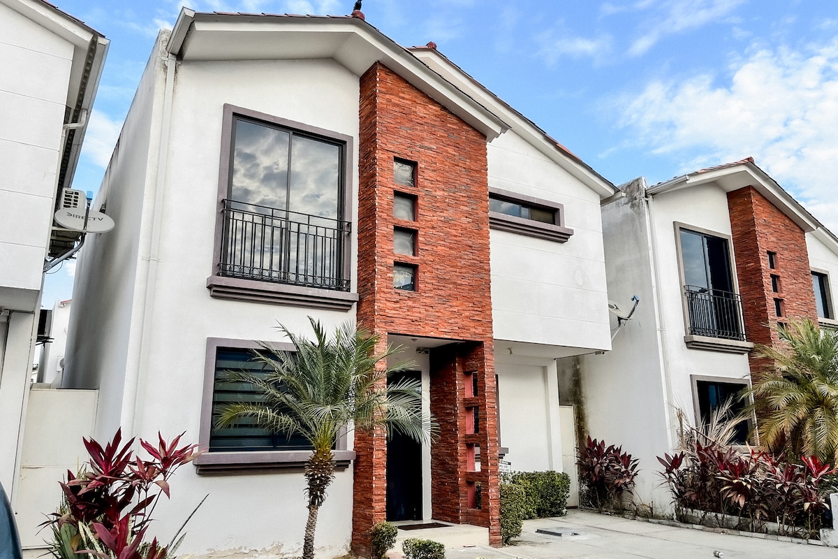 Casa a estrenar completamente nueva con mobiliario y decoración elegante. Ideal para ejecutivos por larga estancia Ideal para pasar vacaciones en Guayaquil Ideal para escaparse de la rutina en pareja Ideal para viajar con dos parejas de amigos cuenta con club con acceso a piscina, sala de juegos cancha de uso múltiple y juegos para niños, cuenta con Alexa para colocar música, aire acondicionado en todos los cuartos y sala, amplio patio con zona de BBQ. Una opción segura nueva y bien decorada.
