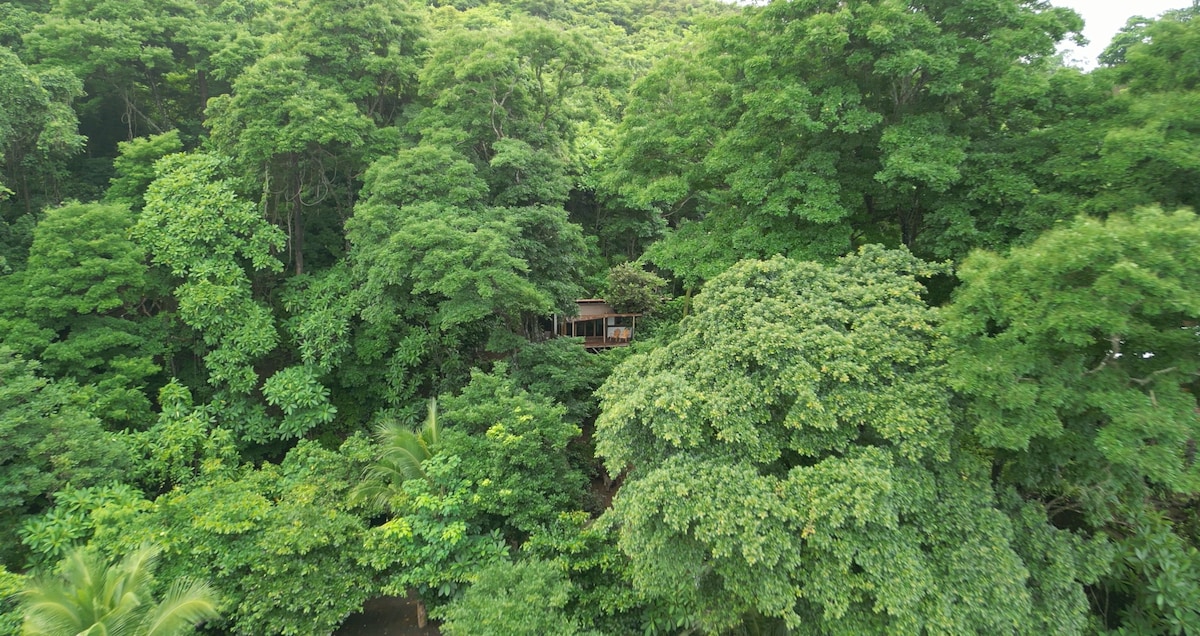 Handcrafted off-grid beachfront treehouse in the jungle canopy. Ocean-view deck with daybed, rocking chairs, and yoga space. Comfy pillowtop orthopedic king bed (or two twins) with soft organic cotton linens. Sofa with view of the surf and fast Starlink WiFi. Full kitchen and private hot-water outdoor shower. Ideal for couples and nature lovers exploring the Pedregal River and wild beaches nearby. 30 minutes from Cambutal on a scenic pristine beach. High-clearance 4x4 required (can be arranged).