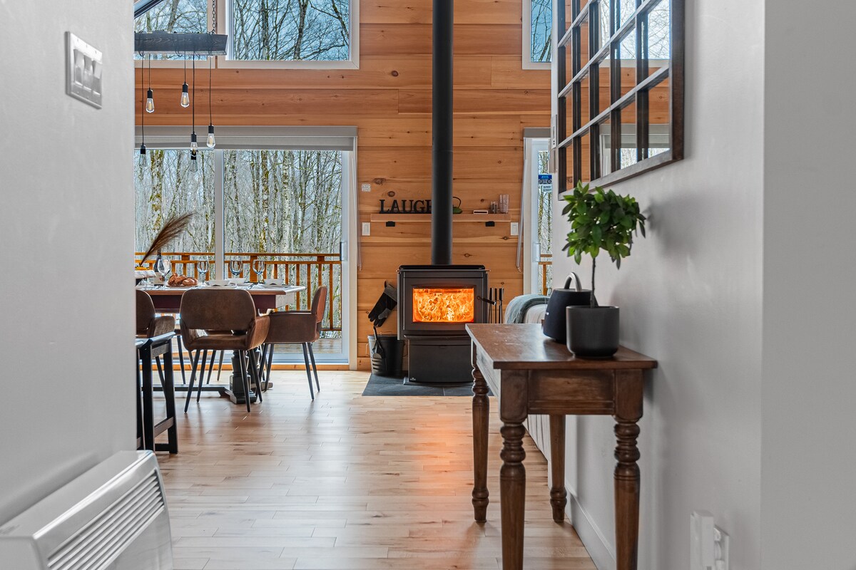 ¡Te damos la bienvenida a La Khabine! Esta acogedora y moderna cabaña viene con todo lo necesario para relajarse y conectarse con la naturaleza. Disfruta de una copa de vino con el sonido de un fuego crepitante en la chimenea de leña. Contempla las vistas al bosque a través de los ventanales que rodean el suelo hasta el techo. Relájate en la sauna privada de barril de cedro al aire libre. Los productos naturales para el cuidado personal, la leña, el jabón de lavandería y el wifi de alta velocidad son gratuitos. Esperamos que te guste nuestra pequeña cabaña de ventanas tanto como a nosotros :)
