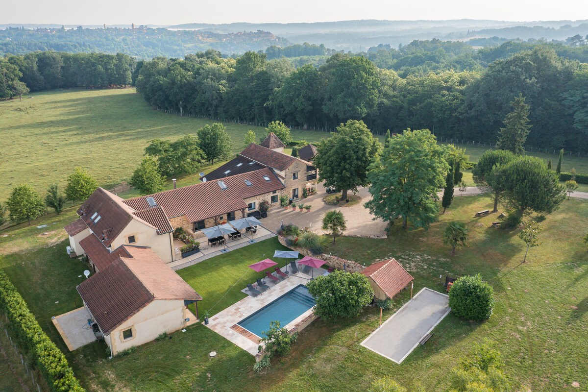 Beau gite en pierre indépendant de 70 m2 avec piscine, grande terrasse avec auvent, entouré d'un parc de 2Ha dans lequel se trouvent des arbres centenaires et des arbres fruitiers. En pleine nature, idéal pour les voyageurs (familles ou groupes), qui recherchent des vacances en toute tranquillité mais proche de lieux touristiques et gastronomiques.