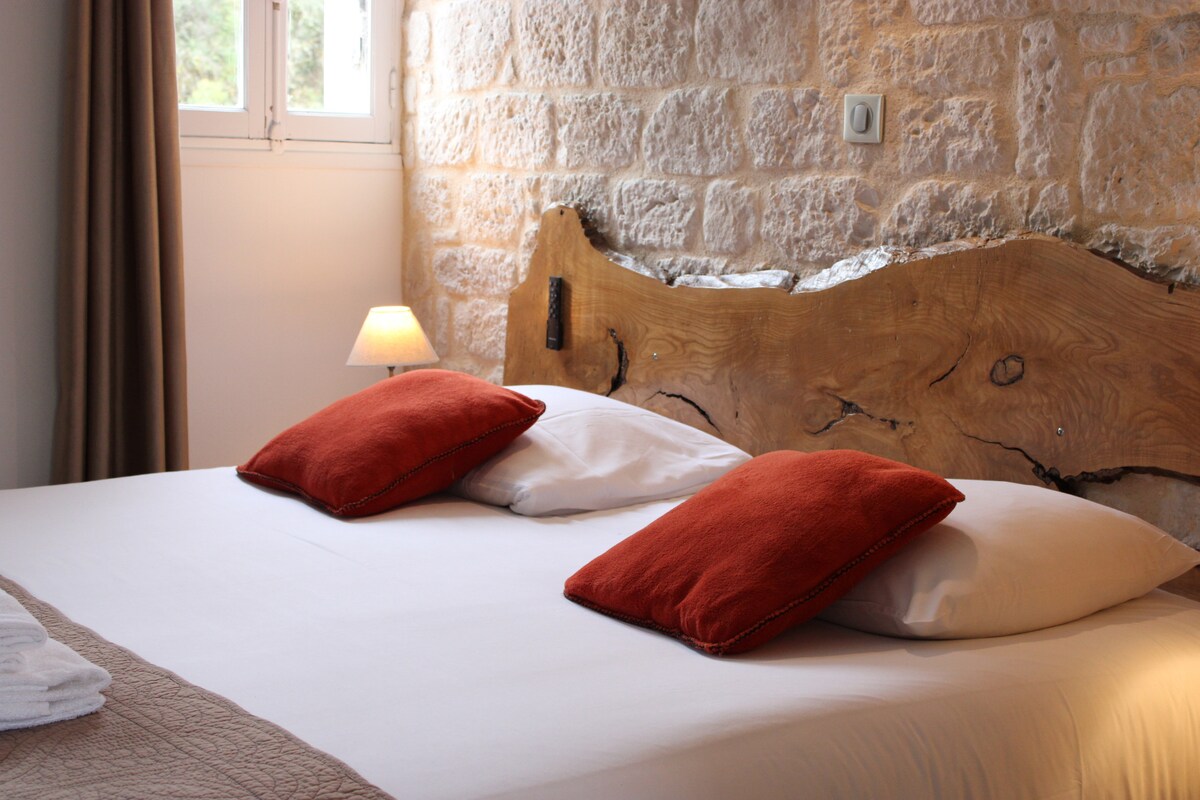 Maison familiale depuis près d’un siècle, notre hotel** aux allures de maison d'hôtes accueille touristes, randonneurs et pèlerins. Avec vue sur les falaises, le château, la piscine ou la rivière, nos chambres vous recevront dans un cadre simple et authentique. Le matin, profitez sur les terrasses d'un petit-déjeuner composé de produits locaux, bio et fermiers sélectionnés par nos soins.