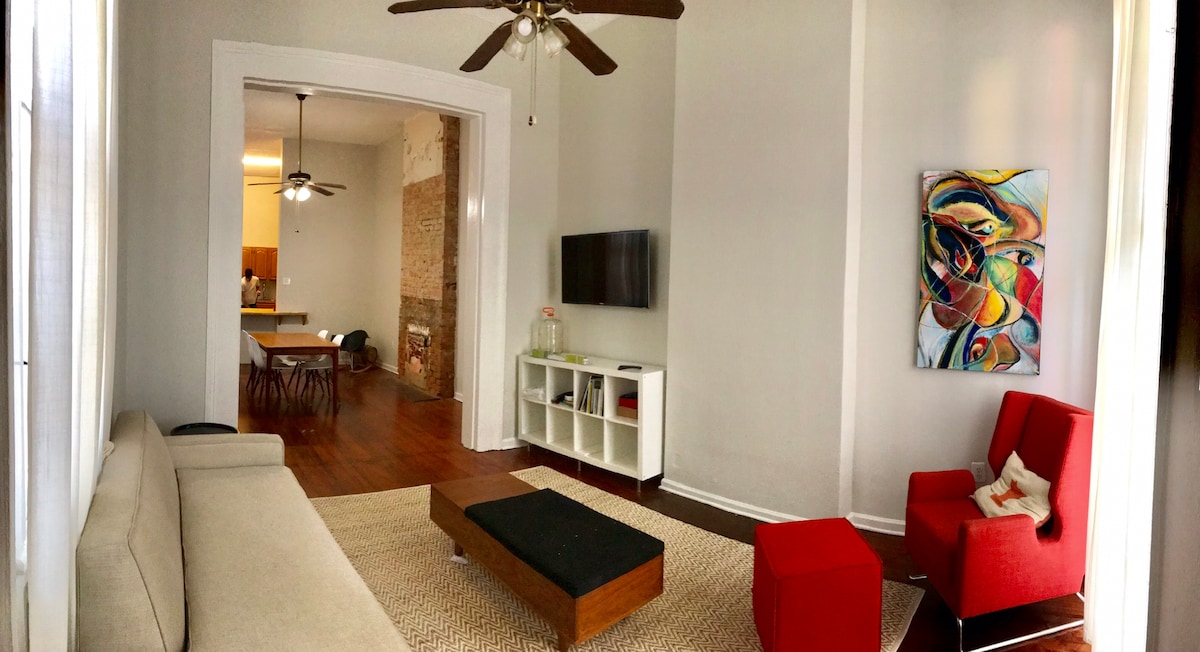 * ¡La construcción de la calle está completa!* Disfrute de Nueva Orleans en esta histórica habitación doble a pocos minutos del Barrio Francés y el Distrito de los Jardines. La casa tiene hermosos pisos de madera, techos altos, una cocina completa y muchos asientos. El diseño del espacio se inspiró en los paisajes de Luisiana y todo el arte es de artistas locales de Nueva Orleans. 22-CSTR-06997; 21-OSTR-17448