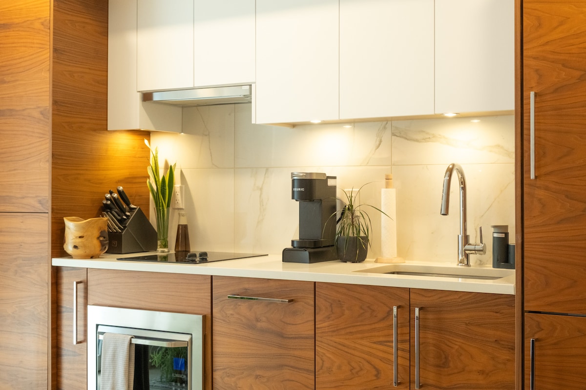 ¡Nueva! Construida en 2023. Disfruta de nuestra elegante suite privada ubicada a nivel del jardín con un patio privado. A poca distancia a pie de tiendas, cervecerías, restaurantes y del hermoso sendero espiritual de Lower Lonsdale. Estamos a solo media manzana de la parada de transporte público más cercana y de los alquileres de bicicletas eléctricas. Visita la playa y las montañas locales o da un paseo rápido en autobús acuático hasta el centro de Vancouver. Esquí/snowboard: estamos a 12 minutos en coche de 3 montañas de esquí: Cypress, Grouse y Seymour. y a 1,5 horas en coche de Whistler.