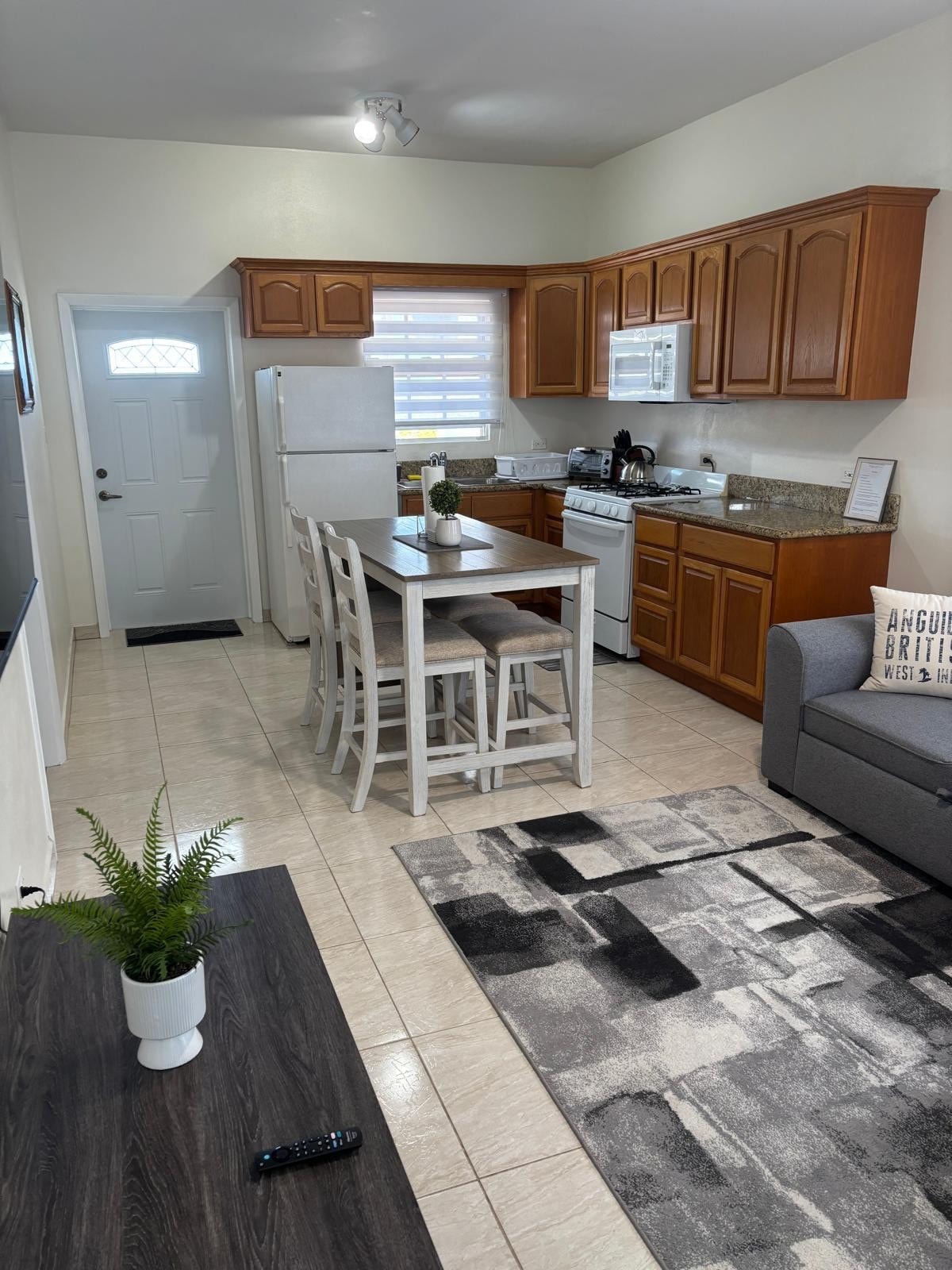 CARTeas es un espacioso departamento boutique de dos dormitorios ubicado en el tranquilo pueblo de George Hill, Anguila. Situado en el nivel superior con una entrada privada y entrada sin llave, el departamento ofrece un refugio tranquilo con comodidades modernas. Disfrutá de una suite principal con cama tamaño king, bañera y ducha a ras de suelo, una suite de invitados con cama tamaño queen y ducha a ras de suelo, cocina completa, sala de estar, escritorio, televisores y lavadora y secadora en la unidad. Una estadía caribeña acogedora diseñada para que te sientas como en casa.