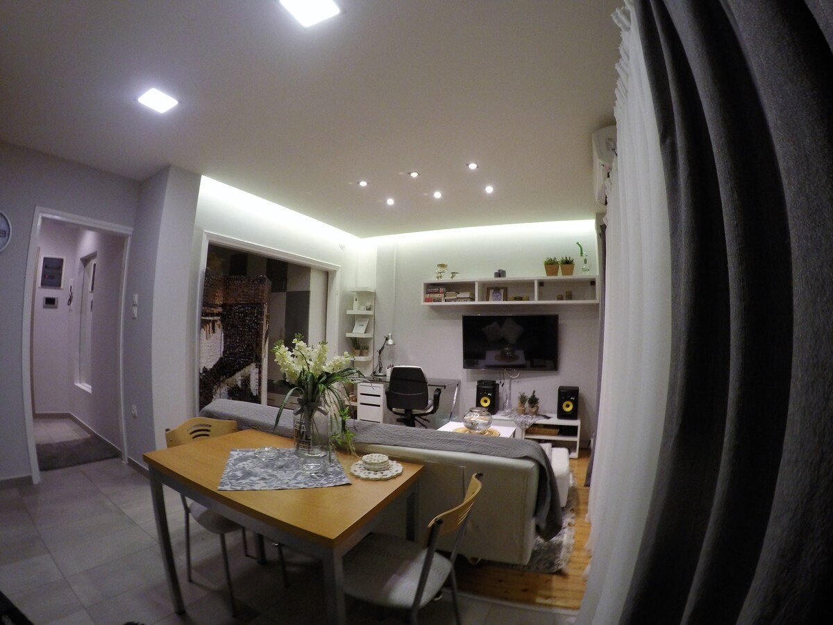 Estudio totalmente amueblado de 45 m2 muy fácilmente accesible en transporte público. El paseo marítimo está a 10 minutos a pie. El Hospital Hippocrates está a 6 minutos a pie y el hospital teatral a 12 minutos. puedes encontrar panaderías y supermercados alrededor de nuestro departamento. Puede alojar hasta 4 adultos y un niño de hasta 2 años. Internet rápido de 100 Mbps y cocina totalmente equipada.