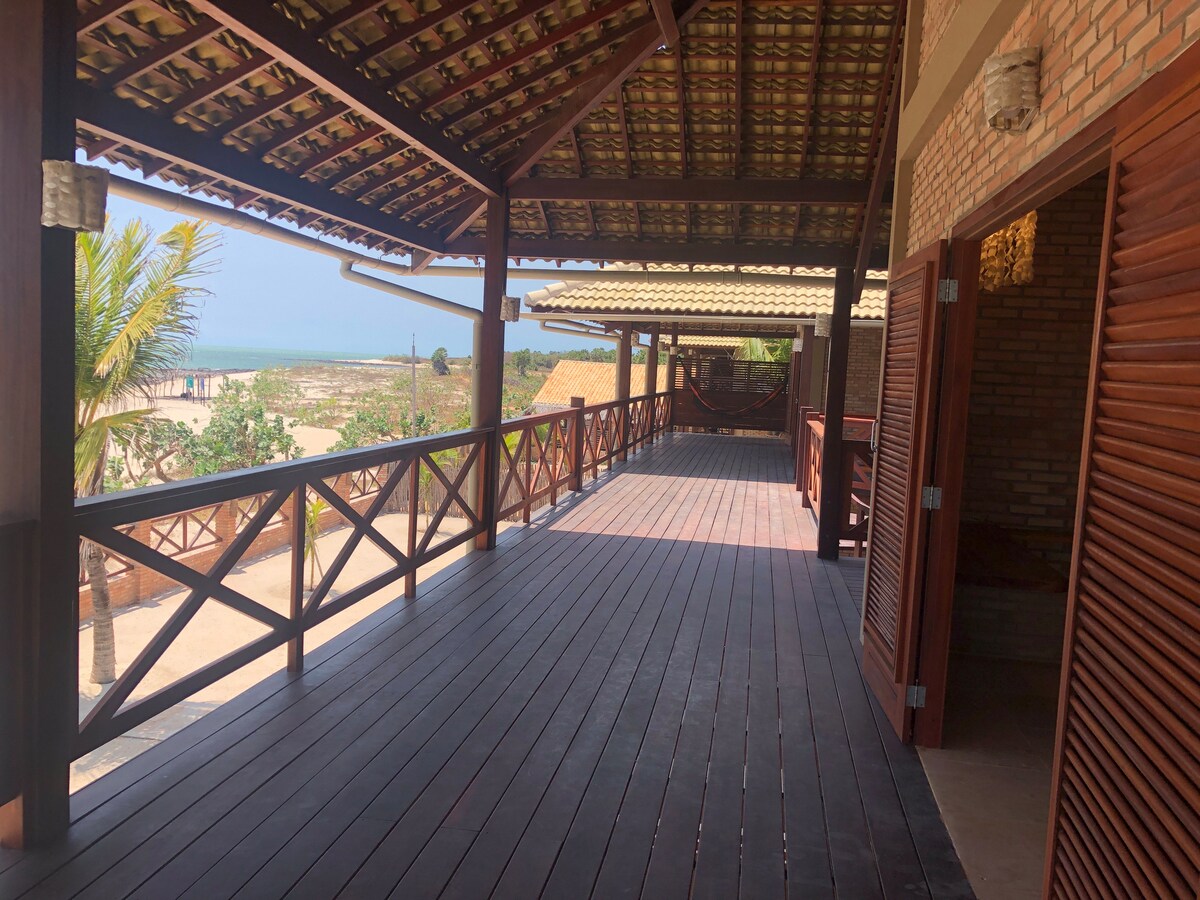 Villa Eva está frente al mar, en la playa de Barra Grande en Piauí. Está en una ubicación privilegiada en la playa con acceso restringido al mar y al aparcamiento, además de una sensación de bienestar y tranquilidad constante. La casa está muy espaciosa y cómoda, cuenta con: cocina americana, aire acondicionado dividido en todos los dormitorios, 01 baño interior y 01 baño al aire libre, sala de estar y comedor equipado. Los servicios de limpieza, lavandería y excursiones se manejarán en el lugar.