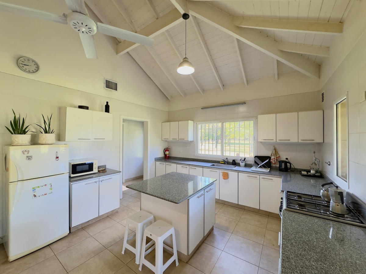 Necesitas cortar la rutina y relajar? Te ofrecemos una experiencia en el campo con todo el confort de tu hogar a solo una hora de la ciudad y ademas podes disfrutar de nuestro LATE CHECK OUT ( pagas 1 noche, disfrutas 2 dias) Amplia y luminosa.Concepto abierto, entorno único, hogar a leña, wifi , ideal para hacer home office. Se aceptan hasta 2 mascotas tamaño mediano, con costo adicional por cada mascota. No se permiten eventos ni recibir visitas. Seguridad en el barrio las 24 hrs.