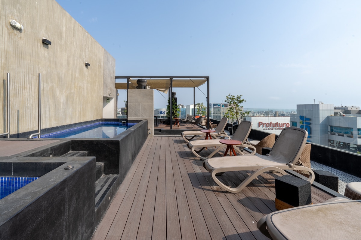 Piscina en la azotea de un increíble loft con vistas a Barranco y gimnasio