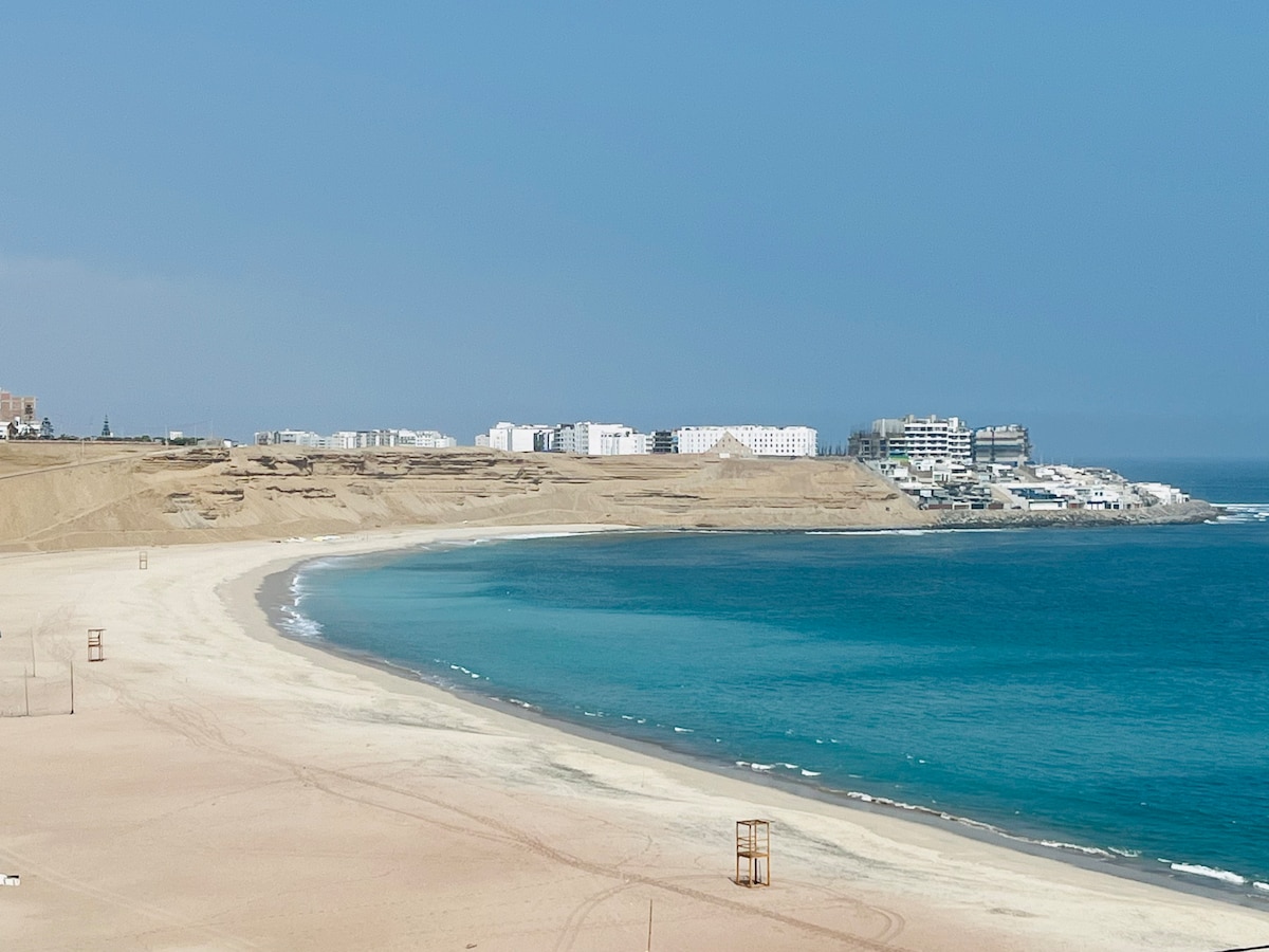 Moderno depa en Playa Arica, a solo media cuadra del mar 🌊. Capacidad para 6 personas, 3 dormitorios, cocina equipada, terraza, lavaseca, WiFi de 1,000 mbps y estacionamiento. A 5 minutos de Punta Hermosa y 3 del CC km 40. El edificio ofrece 🏊 piscina, 🥩 parrilla (sujeta a disponibilidad) y 💻 área de coworking. ¡Ideal para relajarte o escaparte con amigos!