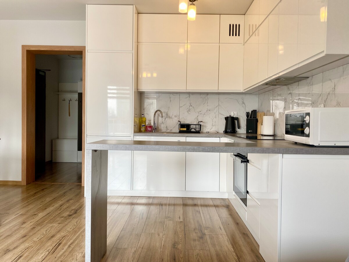 Siéntete libre de disfrutar de un acogedor departamento con una terraza soleada. Tradicional y cálido en sus colores, el interior incluye una cocina conectada a la sala de estar. Un dormitorio cómodo y con aire acondicionado con una cama grande te permitirá relajarte cómodamente, y una cocina con una isla te ayudará a preparar deliciosas comidas que puedes comer en tu propia terraza. Un apartamento perfecto para una pareja, pero gracias a un sofá cama en la sala de estar, puede alojar personas adicionales. Encontrarás un garaje privado para tu auto frente al edificio.