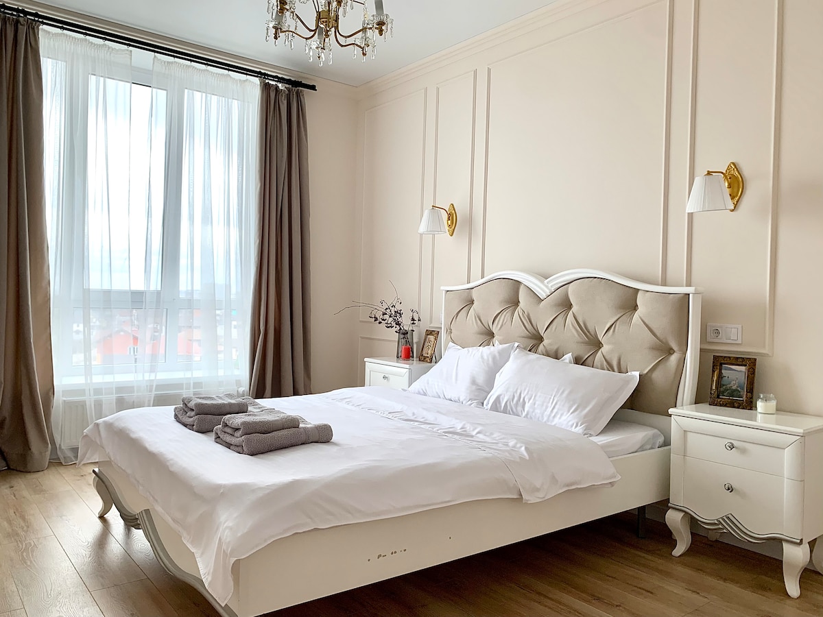 Me gustaría ofrecerte un departamento muy luminoso y acogedor cerca. El departamento está ubicado en un nuevo complejo residencial con un área protegida. Te encantará el ambiente muy acogedor y cómodo en el apartamento. Todo está disponible para una estancia cómoda. A poca distancia se encuentran todo tipo de tiendas, paradas, cafés, clubes deportivos, salones de belleza, un parque infantil, el mar. El centro de la ciudad está a 30 minutos en transporte público.