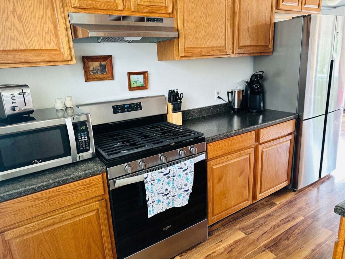 Un refugio perfecto para personas solas, parejas o familias pequeñas, nuestra casa cuenta con vistas a las puestas de sol más hermosas sobre las aguas prístinas del lago Ontario. Tanto si buscas una estancia tranquila como acceso a muchos tipos de aventuras, nuestra casa es un lugar perfecto para ambas cosas. Con patos buceando en busca de peces justo en la puerta trasera, es probable que veas una variedad de vida silvestre, a menudo incluyendo águilas calvas, ciervos y grullas.