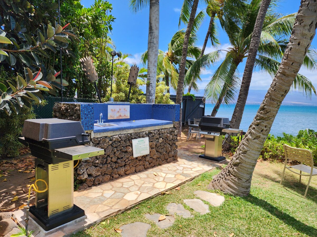 ¡Olas infinitas, espectaculares vistas directas al mar! Relajate en nuestro departamento frente a la playa con una cómoda cama tamaño king y vistas impresionantes al mar. 1 cama, 1 baño, departamento frente a la playa, wifi gratis ¡No puedes acercarte más al océano en Maui! Esta escapada romántica es tranquila y privada, pero céntrica para todo. Cuando las ballenas están en la bahía, tienes una vista perfecta desde el lanai. Disfrutá del relajante sonido de las olas desde el Lanai y observá a las tortugas pastar en las rocas. Capacidad: 2.