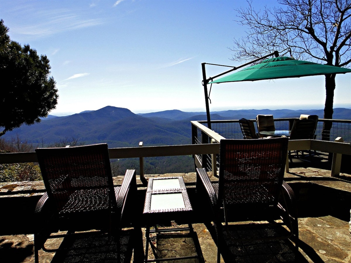 Relájate con toda la familia (o dos) en este tranquilo y aislado refugio de montaña. Una de las mejores vistas del oeste de Carolina del Norte. Mesa de billar. Jacuzzi. Sauna. Parrilla de gas. Múltiples patios. Dos cocinas completas. Completamente renovado recientemente. Ducha de lluvia, bañera profunda Kegerator y nevera para vinos. Sala de entrenamiento con máquina de remo y pesas y estante libres. Ubicado a kilómetros de Appalachian Trail y del Bosque Nacional de Nantahala. A una hora o menos de Asheville, esquí, rafting, tubing y más.