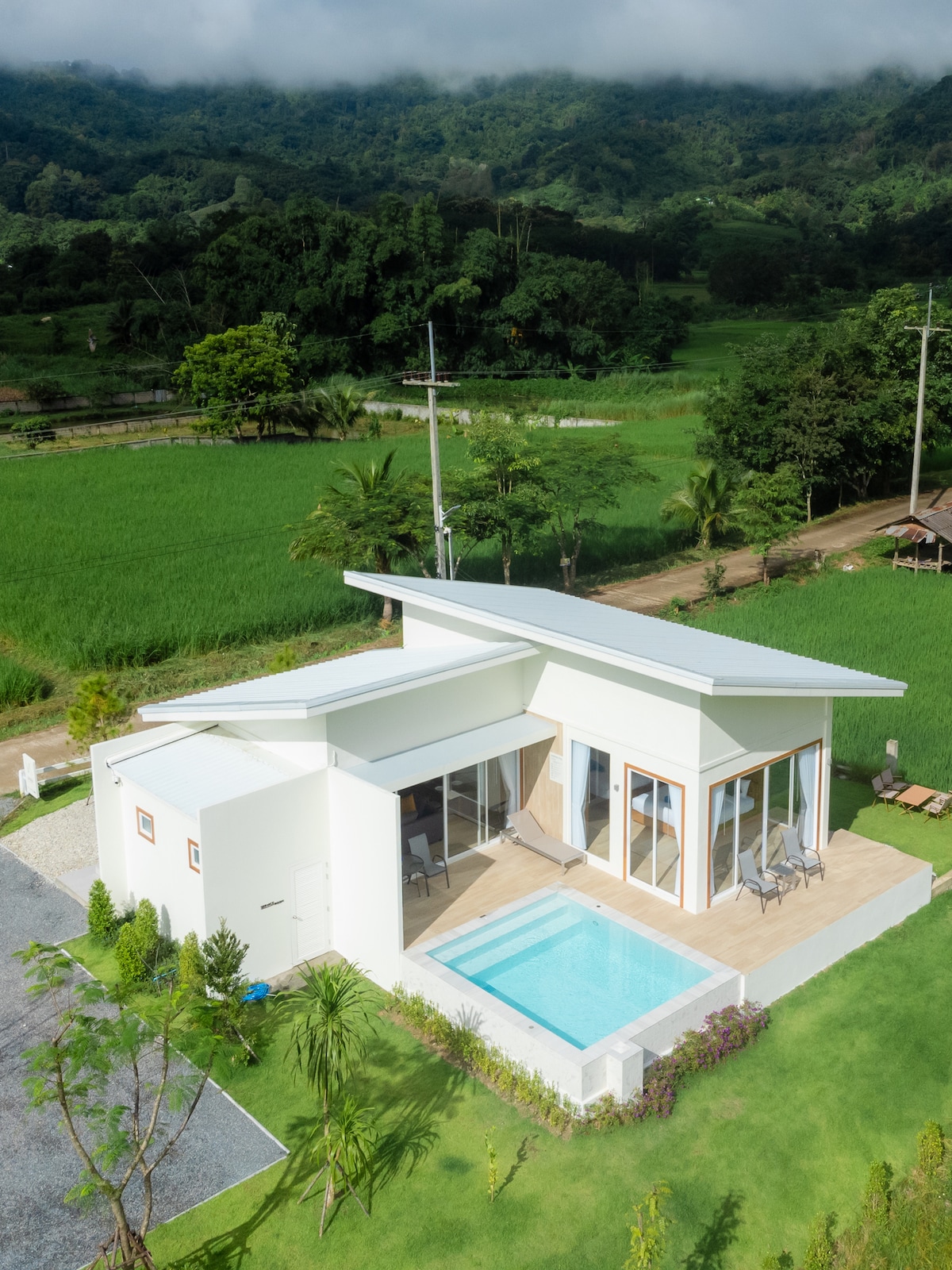 El mejor lugar para amigos y familiares con casa de piscina privada. Ubicada en Tumbon Tha Sut. A solo 15 minutos del aeropuerto y a 5 minutos de la Universidad Mae Fah Luang. Nuestra casa está muy cerca de muchas atracciones: el famoso Choui Fong Tea (20 minutos), el Museo de la Presa de Baan (10 minutos), el templo blanco Wat Rong Khun (30 minutos), Mueng Chiangrai (20 minutos), Singha Park (30 minutos). Estamos justo al lado de Apostrophe's Cafe y a solo 5 minutos de la tienda 7-11 cercana. Conduce 5 minutos hasta la comida callejera local alrededor de la universidad.