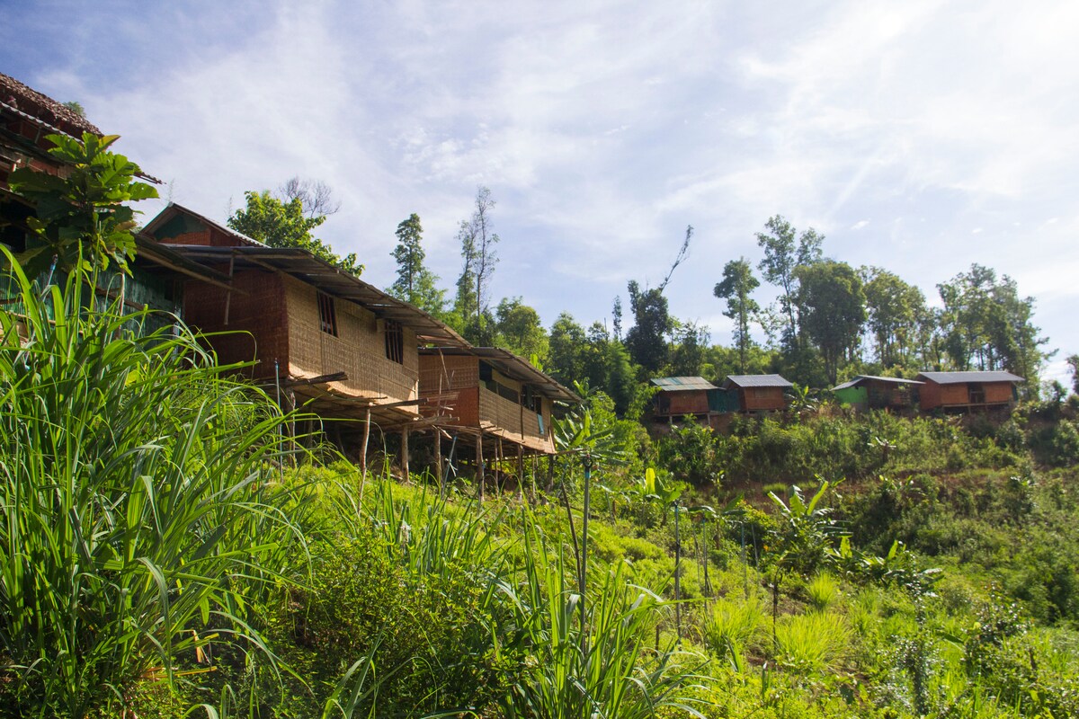 Bamboo House in the Heart of Karen Nature! A unique bamboo house surrounded by extraordinary natural beauty on the land of the Karen people — a place where time slows down and the landscape brings a deep sense of peace and privacy. The house blends harmoniously with the environment and is embraced by green hills, tropical trees, and fresh mountain air. This is a perfect stay for travelers seeking inspiration, tranquility, and an authentic eco-living experience.