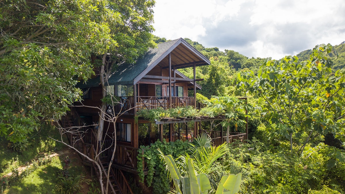 Casa Luna is a beautiful wooden jungle house floating in the sky between the treetops - a place for you to deeply relax and reconnect with nature. Located very close to Minca, it is surrounded by mountains, colorful birds and butterflies of the Sierra Nevada de Santa Marta. Awakened by the sunrise you can have a refreshing dive in the river closeby which is part of the property. The chalet will be entirely for your private use. Please feel welcome to enjoy this piece of paradise!