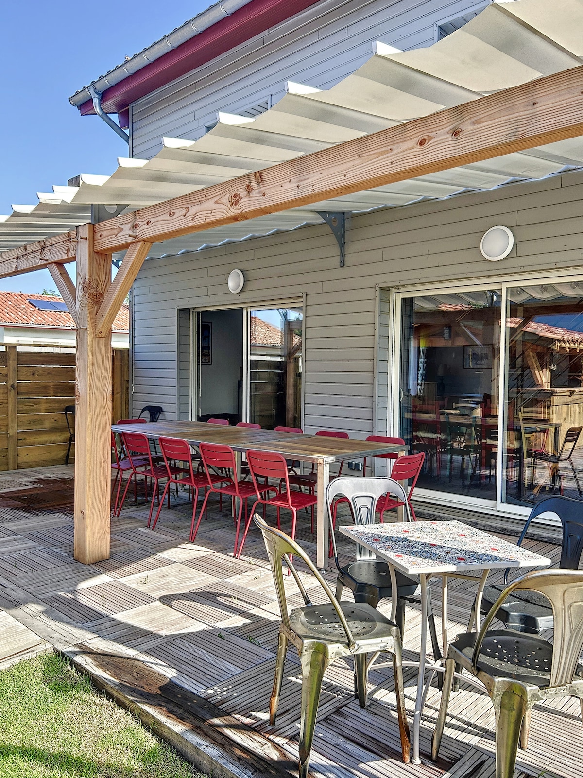 Welcome to our luminous and modern villa with a private pool, two sunny gardens and an airy 4.5-metre high ceiling in the living room. Large sliding doors open fully to both gardens, creating a seamless inside-outside living experience. Located just 12 minutes from the beaches and surf spots of Hossegor, our home offers the perfect balance between calm nature and easy access to restaurants, cafés and shops.