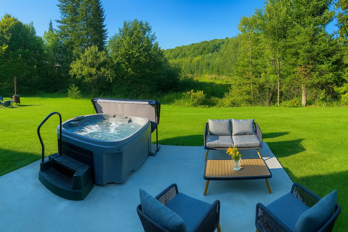Chalet relajante y rejuvenecedor a orillas de un río. El spa, la espléndida sauna de cedro disponible todo el año y el magnífico río te permiten vivir una experiencia termal completamente relajante. Punto de partida de un hermoso y amplio sendero arbolado que sigue el curso del agua (público). Hermosas carreteras y bonitos pueblos cercanos (Ayer's Cliff, North Hatley, Magog, Lac Massawippi, Coaticook...). Muy bonito carril bici en la zona.