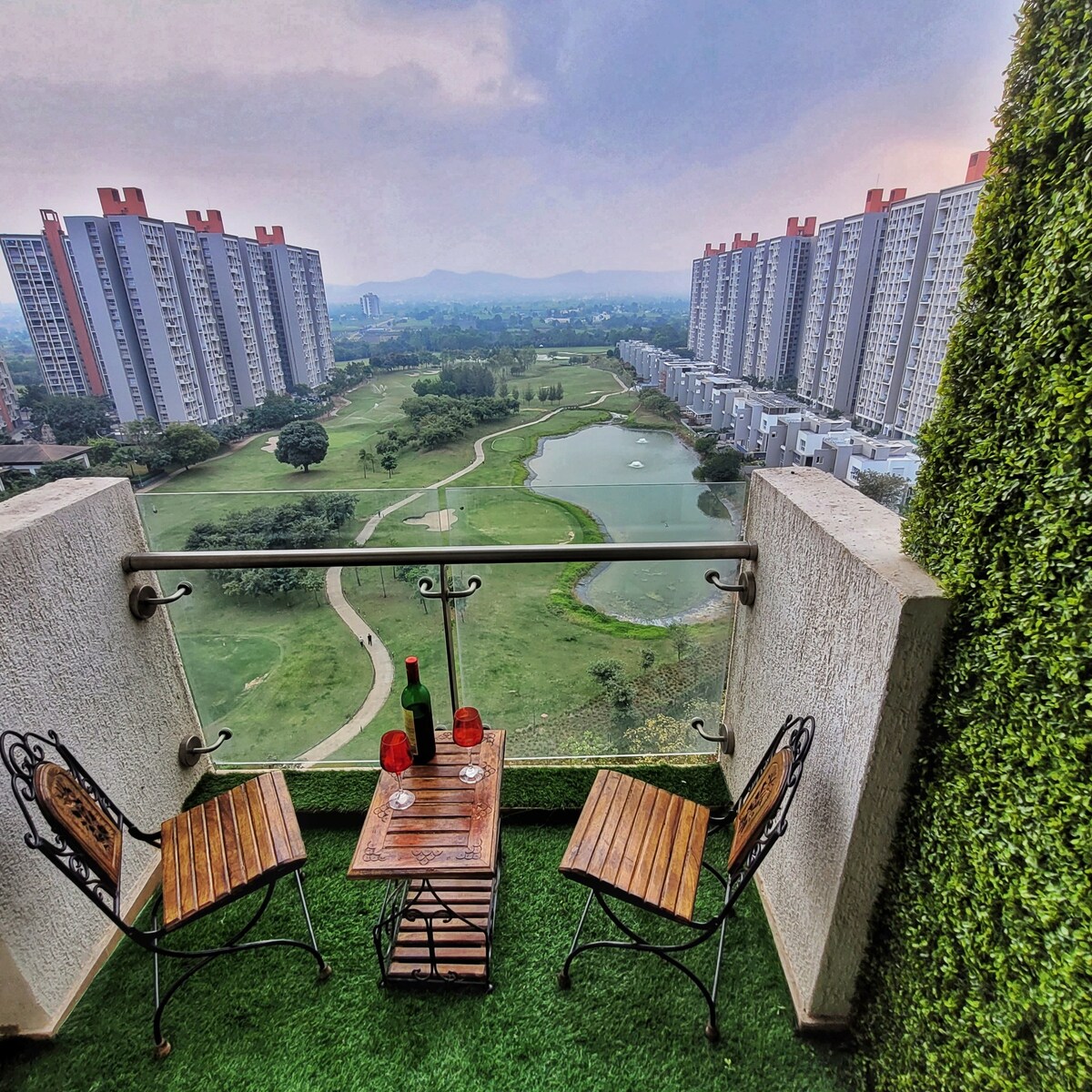 Adéntrate en un mundo de serenidad al abrir la puerta de «Breathe». Este lujoso apartamento de un dormitorio cuidadosamente diseñado en una propiedad de golf de 40 acres es un santuario en medio de la bulliciosa vida de la ciudad, que te ofrece un refugio tranquilo para relajarte, descansar y recargar energías. Ubicado cerca de la autopista Mumbai – Pune, hace que esta propiedad sea perfecta para una visita rápida a la ciudad de Pune o simplemente para una escapada de fin de semana. El apartamento ofrece vistas panorámicas al campo de golf, al río y a la cordillera.