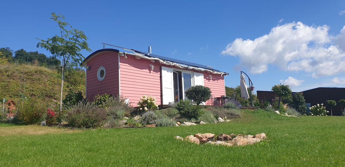 Off-Grid Tiny House so záhradou uprostred viníc