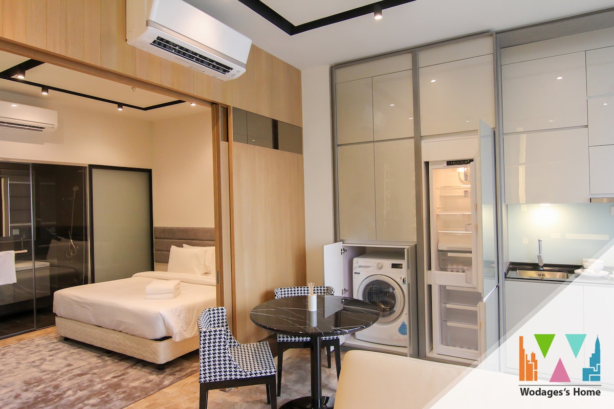 The Luxe By Infinitum, estudio en el centro de KL perfecto para viajeros solos y parejas, ubicado en el centro de KL, cerca de restaurantes y a poca distancia a pie (1,8 km) de KLCC Características * Wifi (fibra de alta velocidad de 300 Mbps) * Aire acondicionado de 2,0 HP * Lavadora * Baño con calentador de agua * 1 cama tamaño queen * Televisor LED Android de 43 pulgadas * Plancha * Secador de pelo * Champú y gel de ducha incluidos * Toalla incluida Hora de llegada: 3:00 p. m. Hora de salida: 12:00 h Acceso gratuito para los huéspedes Solo gimnasio y piscina *Esta es una unidad de llave doble.