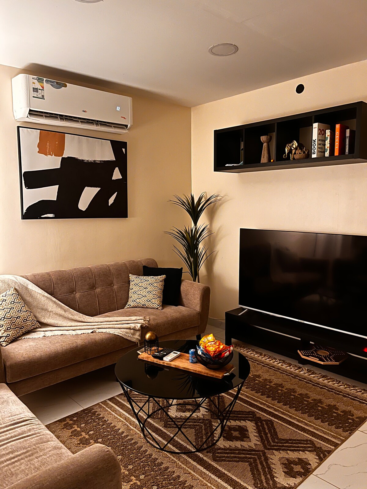 اكتشف جمال الراحة والأناقة في هذه الشقة الواقعة في قلب حي العليا بمدينة الخبر. تتميز الشقة بغرفة نوم مريحة وصالة مريحة، حيث يمكنك الاسترخاء أمام تلفاز ذكي بحجم 65 بوصة، مما يضمن لك تجربة ترفيهية استثنائية. مع الإنترنت السريع المتوفر، يمكنك البقاء متصلاً أو العمل بكفاءة دون أي انقطاع. تصميم الشقة العصري وأجواؤها الدافئة تجعل منها الملاذ المثالي بعد يوم حافل بالاستكشاف.