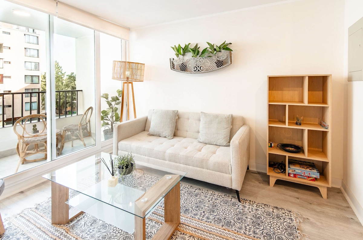 Comodidad y estilo con gran ubicación. Departamento nuevo, decorado con excelente gusto y detalles que invitan a sentirse bien. Cuenta con terraza y vista a la cordillera, estacionamiento, dos habitaciones, escritorio, A/C, WiFi rápido, Smart TV y cocina full equipada, gym.Ubicado en Ñuñoa, zona tranquila y segura, a pasos del metro y Mall Plaza Egaña, rodeado de gastronomía, tiendas, clínicas y servicios. Ideal para viajeros exigentes que buscan descansar, trabajar cómodos o explorar Santiago!