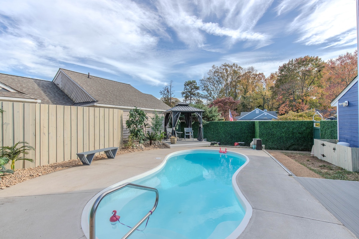 Encuentra lo mejor de ambos mundos aquí, una escapada tranquila a solo 12 minutos del centro, Carytown, Scott 's Addition, el VMFA y mucho más. Disfruta del río James haciendo tubing, kayak, rafting o natación, senderismo, restaurantes galardonados, todo a 5 minutos en auto. Nuestra casa incluye servicios como un jacuzzi para 8 personas, un muelle en el estanque con hermosas vistas, fogata al aire libre, patio, baño de aceite esencial y té/café por nuestra cuenta. Nuestra cocina está equipada con utensilios de cocina, especias y platos. STR-135430-2024 es