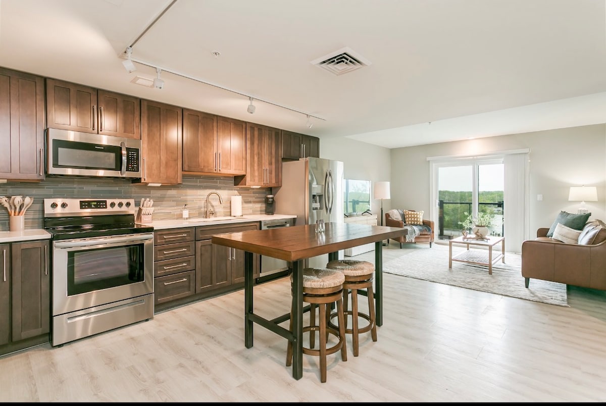 Ubicado en el corazón de Victor, Nueva York, ¡este apartamento totalmente renovado es una estancia obligada! ¡Ubicado justo al norte del lago Canandaigua, al sur de la ciudad de Rochester y a 5 minutos de la I-90! Este encantador apartamento incluye un baño completo/lavadero, una cocina de concepto abierto/sala de estar, isla de cocina con electrodomésticos nuevos de acero inoxidable y encimeras de cuarzo. Dos dormitorios, el principal tiene una cama tamaño king y el segundo dormitorio tiene dos camas completas. El apartamento se encuentra ARRIBA/DETRÁS de la casa victoriana principal.