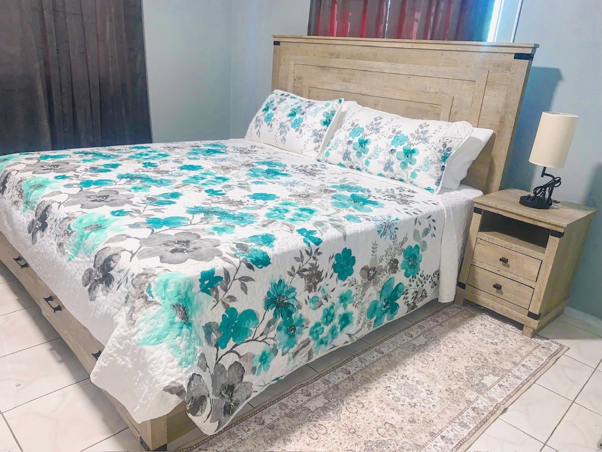 Relájate y escápate en esta encantadora granja en la hermosa campiña de Jamaica. Puedes quedarte en casa y relajarte con familiares y amigos o salir a explorar las atracciones cercanas. Ubicada en la costa sur, la granja está a 40 minutos de Y.S. Falls, Appleton Estate Rum Tour, Holland Bamboo Avenue, Floyd's Pelican Bar y más. La granja se renovó completamente en 2024 con 4 dormitorios, 3 baños completos y una cocina mejorada. Disfruta de la comodidad de los ventiladores y acondicionadores de techo en todas las habitaciones.
