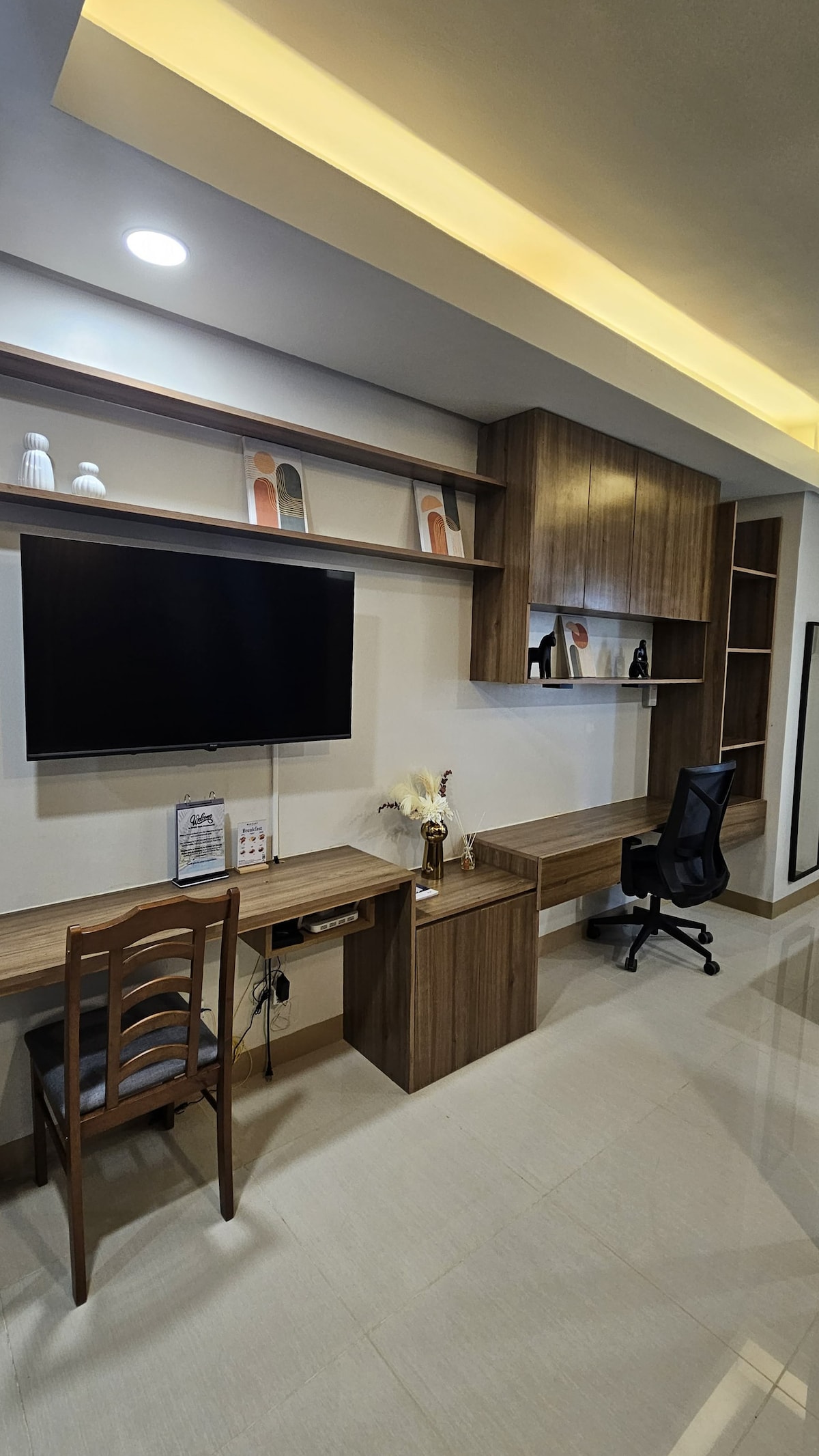 Disfrutá de la comodidad y la conveniencia de la ciudad en BethanyHaven at La Fayette Park Square, un estudio luminoso y moderno a solo unos pasos del centro comercial Festive Walk, perfecto para estadías de negocios o de placer. Este refugio acogedor en el corazón del parque empresarial de Iloilo está diseñado para viajeros que buscan comodidad, accesibilidad y tranquilidad. Ya sea que estés aquí por negocios o por placer, Bethany Haven se esfuerza por hacerte sentir como en casa mientras disfrutas de lo mejor de la ciudad de Iloilo.