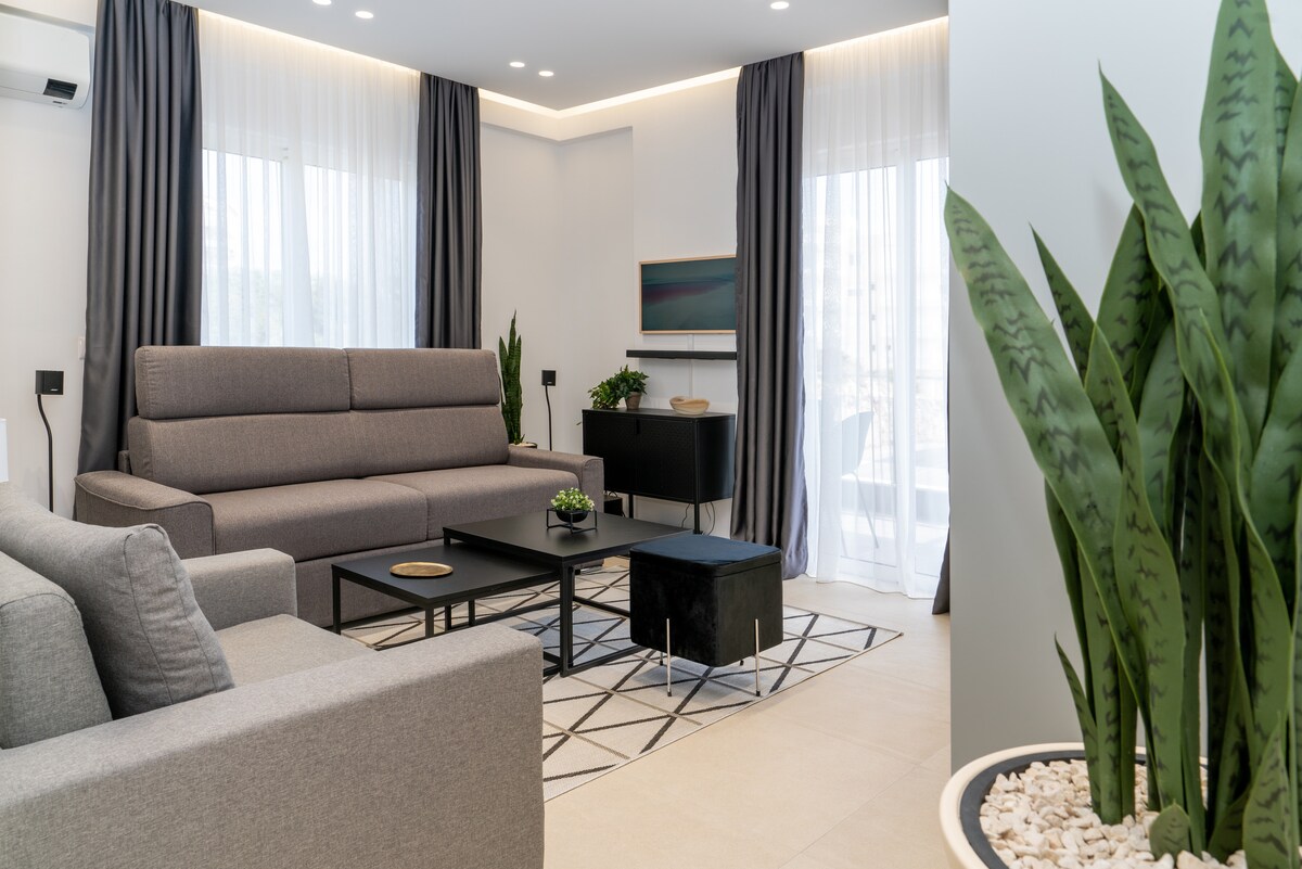 Це стильне помешкання ідеально підходить для перебування груп. Це унікальне помешкання має власний стиль. Тут ви знайдете усе необхідне для гарного відпочинку. У цій новій квартирі ви зможете розслабитися і отримати задоволення від комфорту, який забезпечать якісні меблі та побутові прилади. Усього декілька кроків від будинку і ви опинитеся на чудовому гальковому пляжі Іонічного моря. Квартира знаходиться в районі, де можна відвідати кращі таверни ти ресторани Саранди.